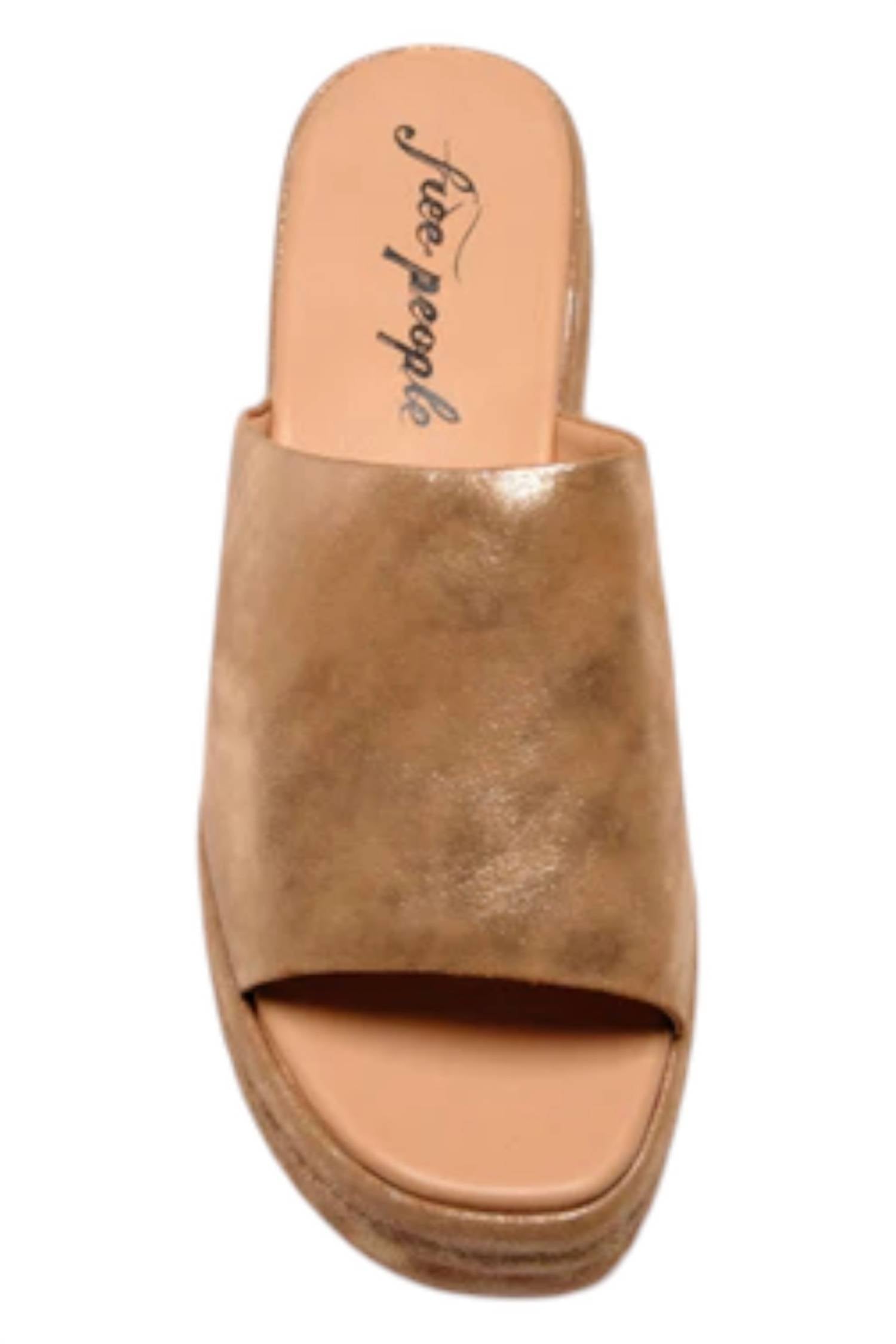 Mule design with a textured flatform sole. Cushioned insole. Wide leather strap. Lightweight construction. Consciously made to reduce environmental footprint. Artisan crafted from fine leathers and premium materials. Part of FP Collection's vintage aesthetic. Imported.