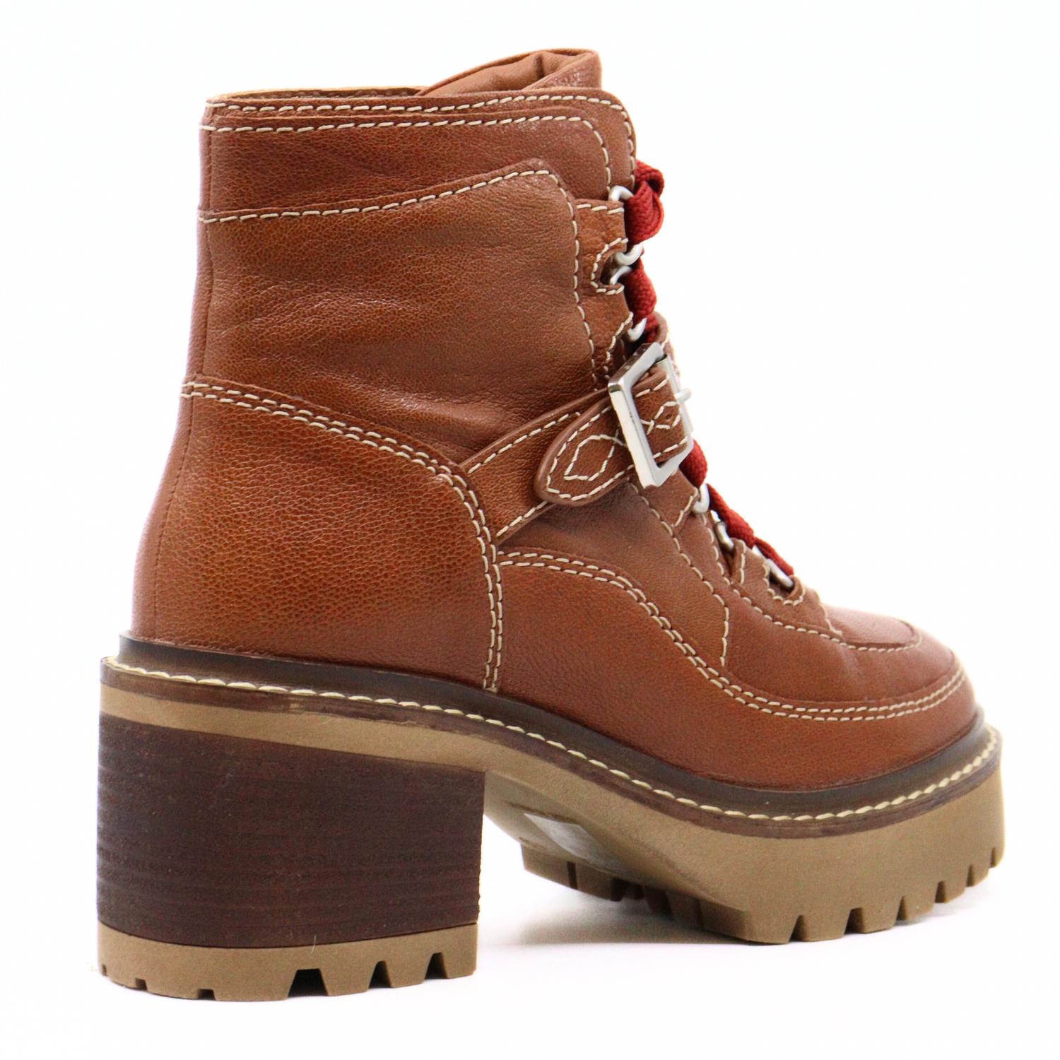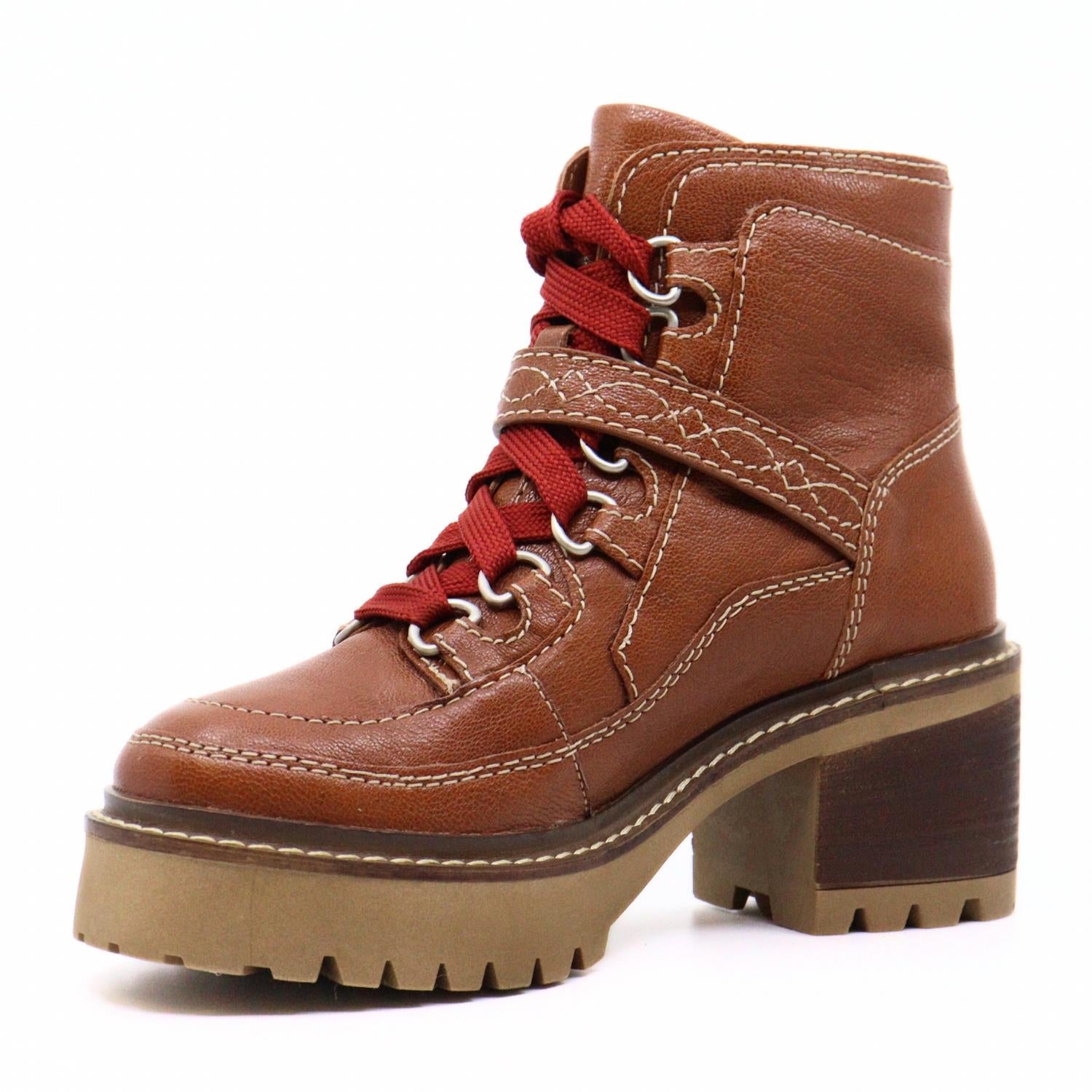 Say hello to the perfect, most versatile boot. The ankle height makes this style easily transition from day to night. Wear them with your favorite skinny jeans and tee for a more laid back look, or pair them with your favorite mini dress and jacket for a night out on the town. Elevate your shoe collection with the Women's Jasper Hiker Boots by Free People in a charming Vintage Tan. These round-toe lace-up booties are designed for both muddy trails and city sidewalks, featuring a heritage-inspired adjustable buckle strap and a durable TPR outsole known for its slip resistance. With a chunky heel height of 2.5 inches on a 1-inch platform, these boots offer both style and comfort. Note that this style runs large, so it's recommended to size at least a half size down for the perfect fit.