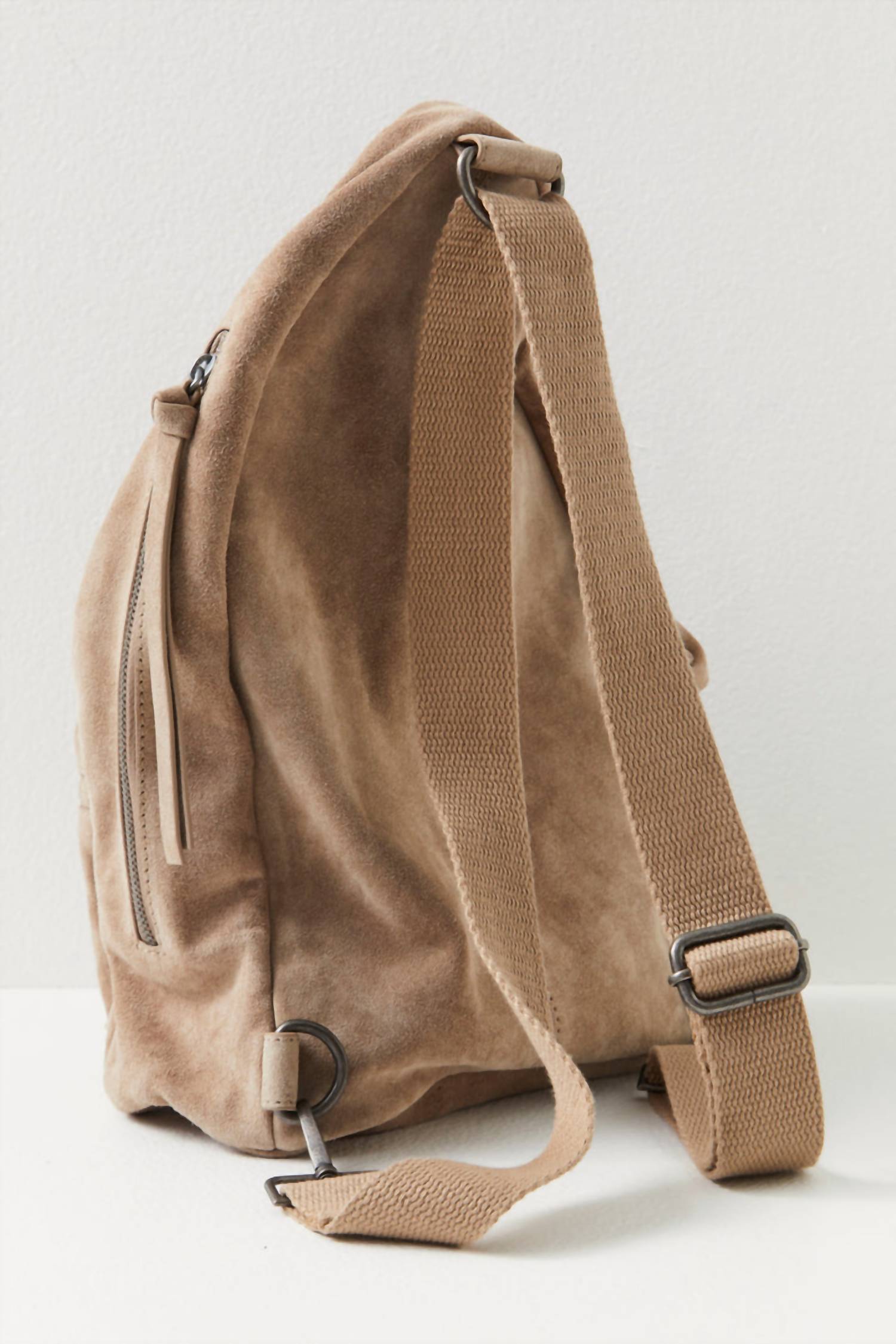 The crossbody bag is a trend that is here to stay and we especially love this style. Introducing the Women's Oxford Suede Sling Bag by Free People in a chic mushroom hue. This crossbody bag is crafted from premium suede, offering a sophisticated and stylish touch to any outfit. Made in India, it provides a unique flair to your accessory collection. Perfect for keeping your essentials close while on the go.