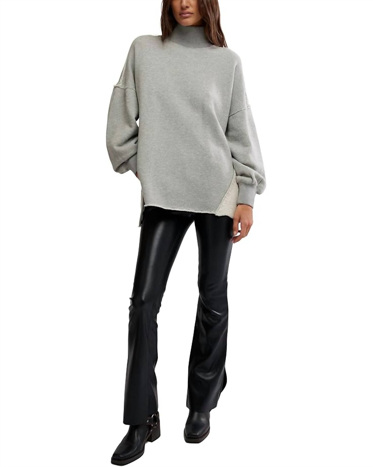 Whether you're running around town or lounging at home, this sweatshirt works for both. Designed with a high turtleneck and long puffy sleeves, this textured sweatshirt makes a stylish statement. 100% Cotton. Garment length is 31 inches. Imported and features a pull-on closure for easy wear. Machine washable.