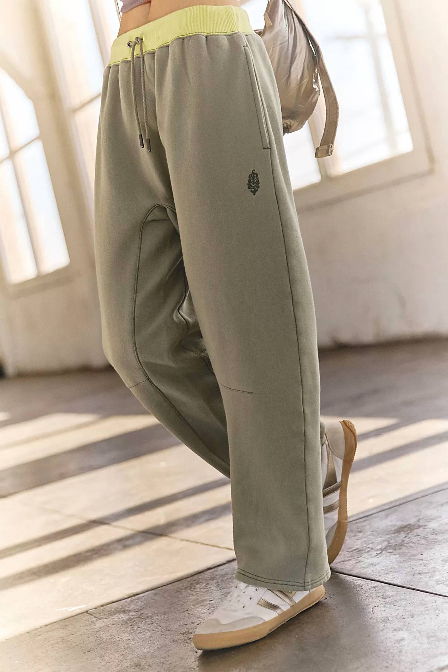 No gym necessary for these cool-girl joggers. Discover the effortless style of the You Wish Pant by Free People, designed in a soothing hue. These women's high-rise joggers feature a barrel silhouette and elasticated drawstring waistband, complete with side pockets for practicality. The relaxed fit is crafted from a blend of 77% cotton and 23% polyester, offering comfort and breathability. Tie closure. Machine wash cold, tumble dry. Measurements for size small include a 30.5-inch waist, 11.75-inch rise, and a 27-inch inseam.