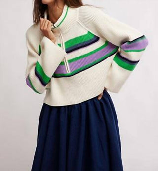 Free People - Striped Greta Half Zip Sweater