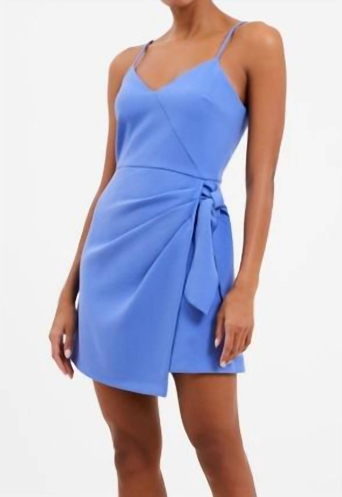 The kind of easy and flattering dress you'll be reaching for all season long. Elevate your cocktail party ensemble with the V Neck Bow Envelope Mini Dress by FRENCH CONNECTION in vibrant Baja Blue. Featuring spaghetti straps and a smooth, silky-feel fabric, this A-line mini accentuates your figure with an elegant V-neckline. The dress is equipped with an adjustable, concealed zip closure for a seamless look. For best results, hand wash and lay flat to dry. Perfect for a Valentine's Day outing or any spring occasion, this dress embodies the trend of quiet luxury.