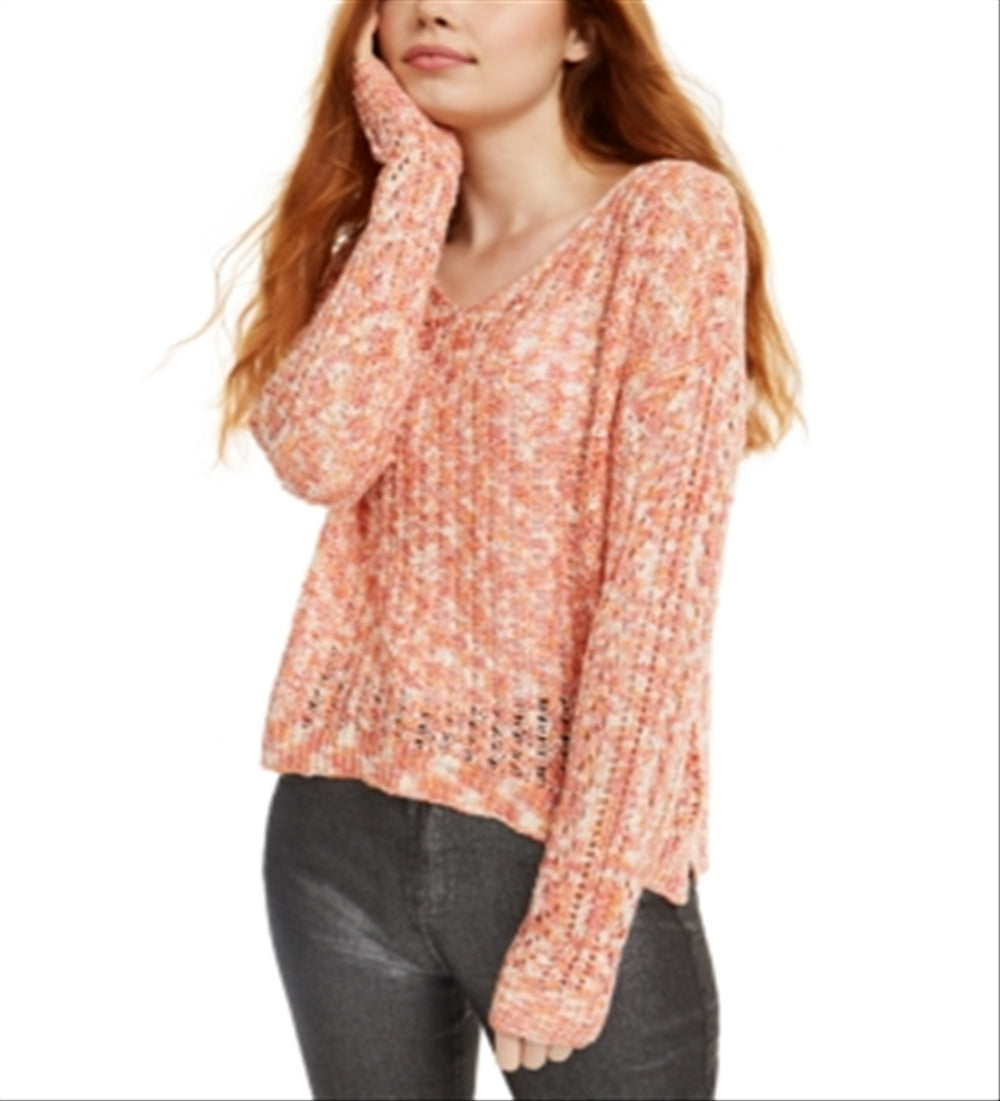 Freshman Juniors Fuzzy V-Neck Sweater Orange Size Extra Small