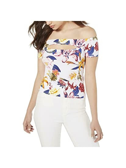 Guess Women's Off-The-Shoulder Floral-Print Top White Size X-Small