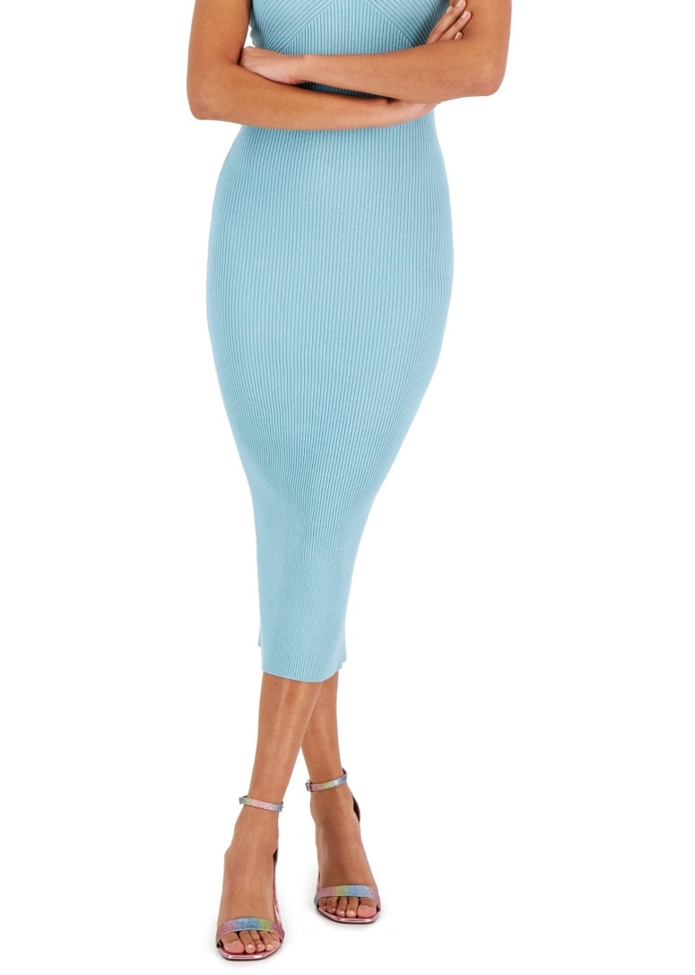 Get ready to wow in this sultry-sleek dress by GUESS| a halter-neck style that flaunts your fab figure