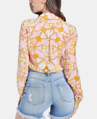 Guess Women's Madyson Printed Long-Sleeve Shirt Pink Size Medium