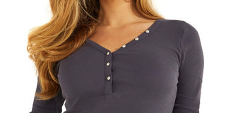 GUESS Women's Rib Knit Logo Henley Top Blue Size X-Large