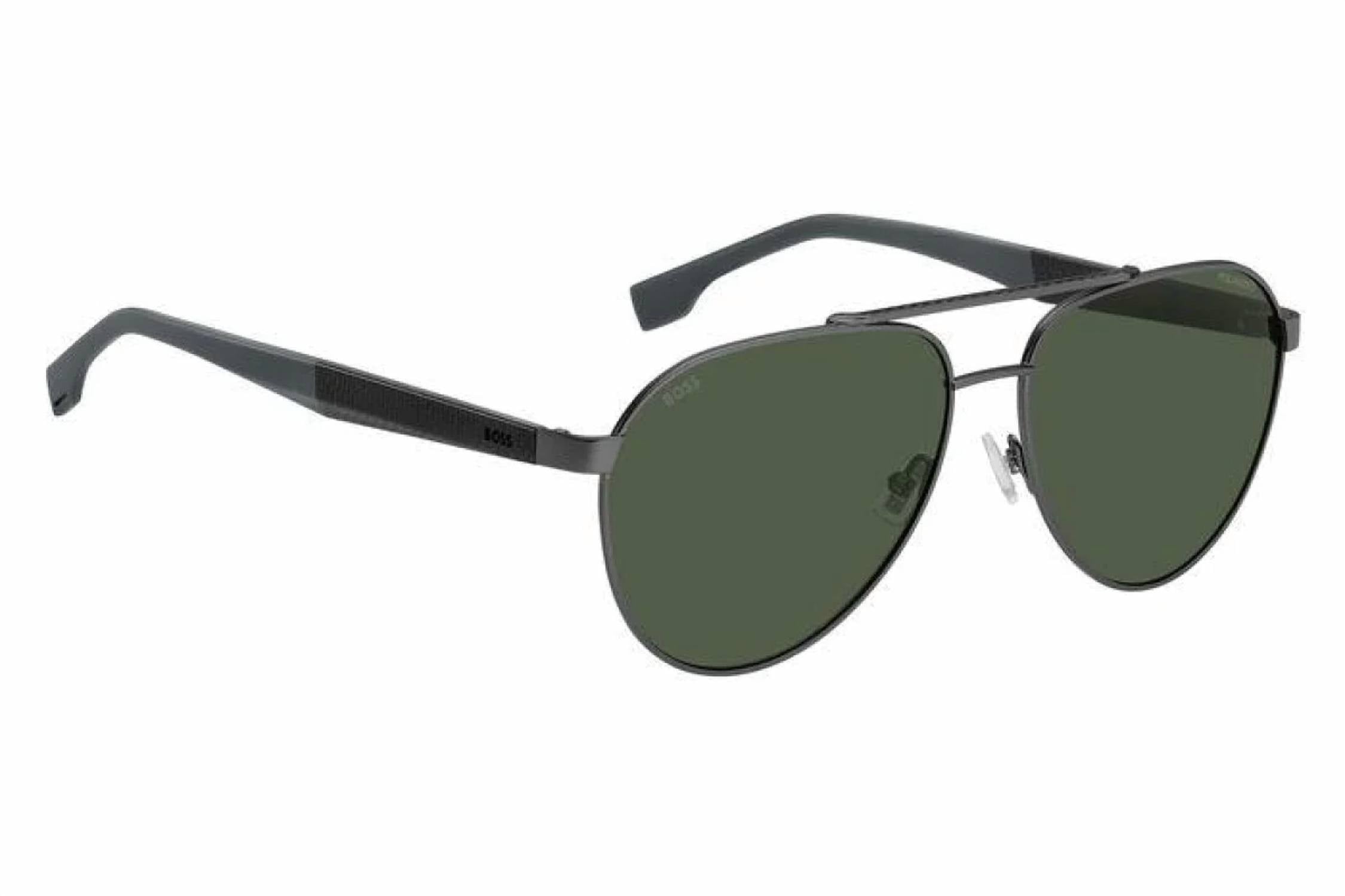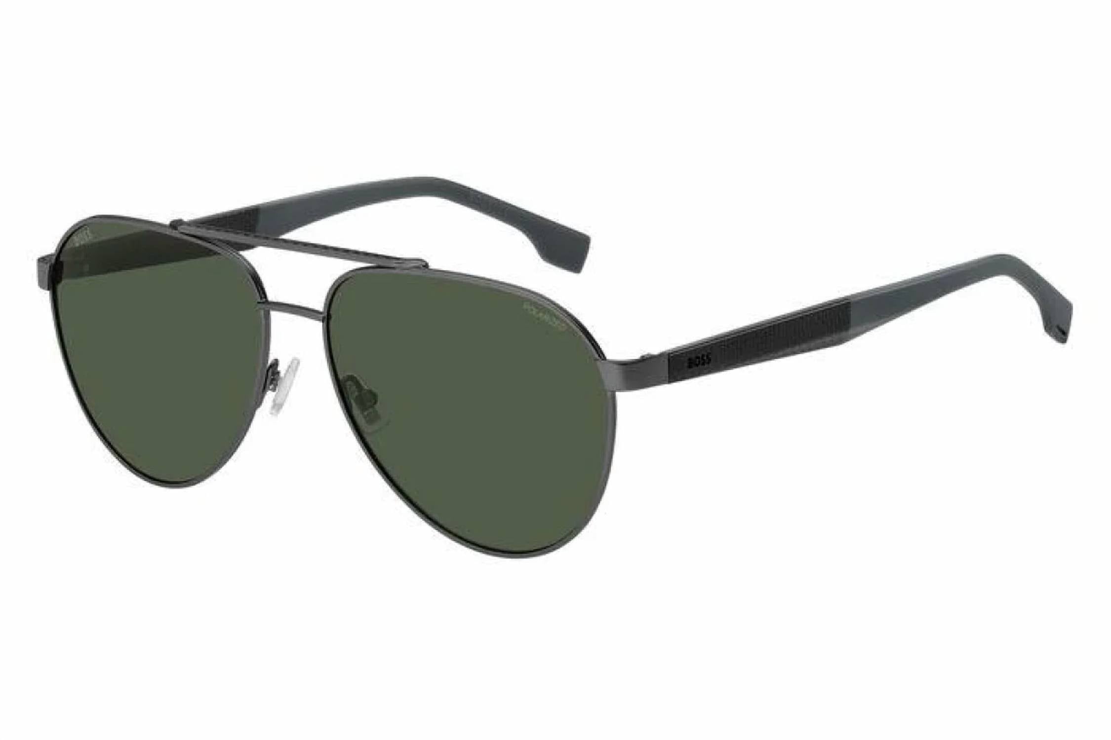 Elevate your eyewear collection with the Men's 1485/s Sunglasses by Hugo Boss, combining modern design with classic aviator style. These sunglasses feature green polarized lenses and a matte ruthenium green frame, ensuring both style and comfort. The temples are crafted from durable carbon fiber, while the front is made from stainless steel for a sleek look. Ideal for any sunny day, these sunglasses beautifully marry functionality with luxury. Size: 60X15X145.
