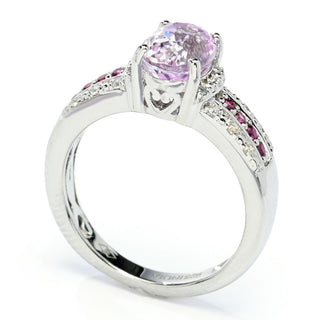 Gem Treasures 3.45ctw Kunzite, Burmese Ruby & White Zircon Halo Ring
