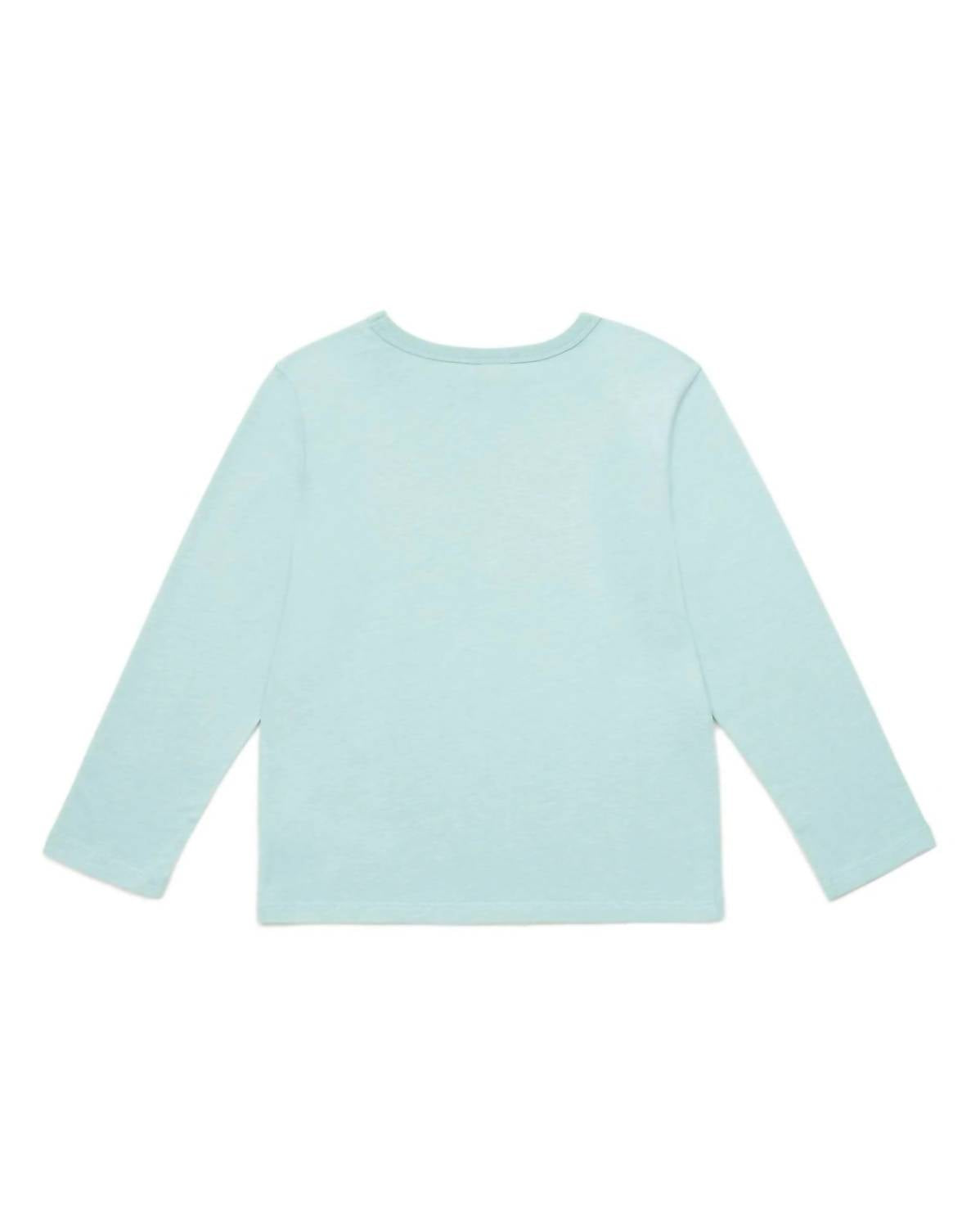 This long-sleeved garment boasts a unique graphic print, imagined in the BONTON design studio, and comes in a striking Givré Blue with pippin green contrast. Featuring raglan sleeves, ribbed edges, and a stylish logo on the front, this casual top is effortlessly stylish.