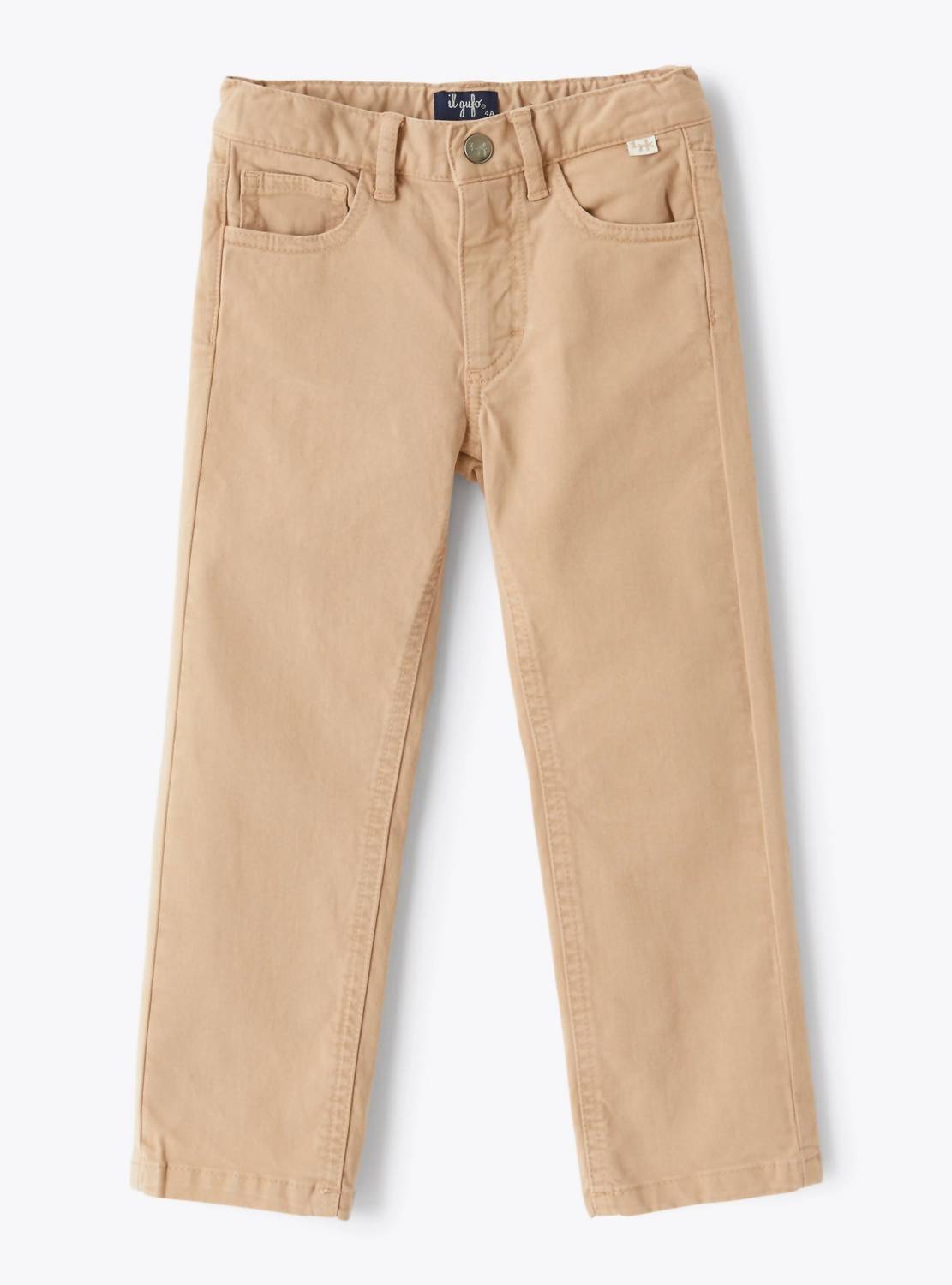 Introducing the Kid's 5 Pocket Trousers by Il Gufo, an essential for any child’s wardrobe in a versatile sand hue. Crafted with a composition of 98% cotton and 2% elastane/spandex, these trousers offer both comfort and flexibility. They feature a regular fit with a button fastening, belt loops, side pockets, and back patch pockets, with a practical internal elastic for an adjustable fit. Care instructions include machine wash at 30°C, with caution against bleach, dry cleaning, and tumble drying.