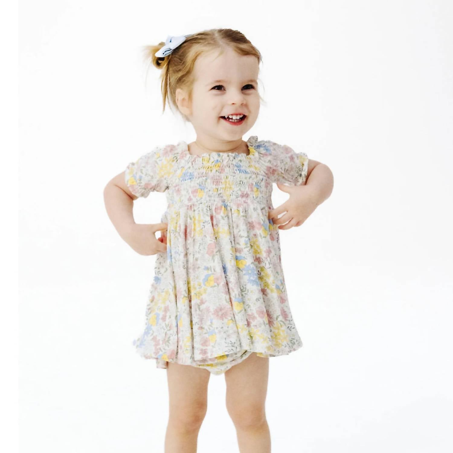 Introducing the Infant/Toddler Girls' Angel Dear Puff Sleeve Twirly Dress by ANGEL DEAR, a charming choice for spring festivities. This dress is crafted from soft, breathable bamboo fabric with a delightful floral pattern in a multi-color palette, featuring enchanting puff sleeves and a smocked bodice for an adjustable fit. Perfect for any casual occasion, it’s gentle on the skin and provides a blend of comfort and cuteness. Care instructions include machine washing and tumble drying for easy maintenance.