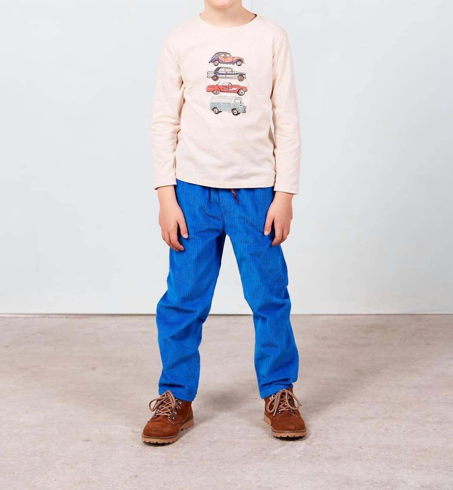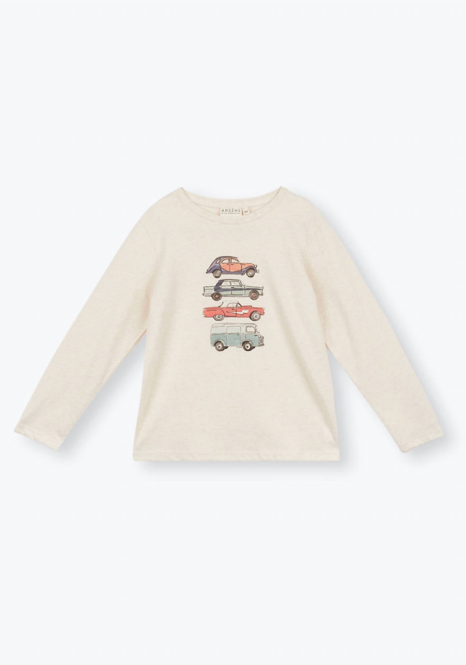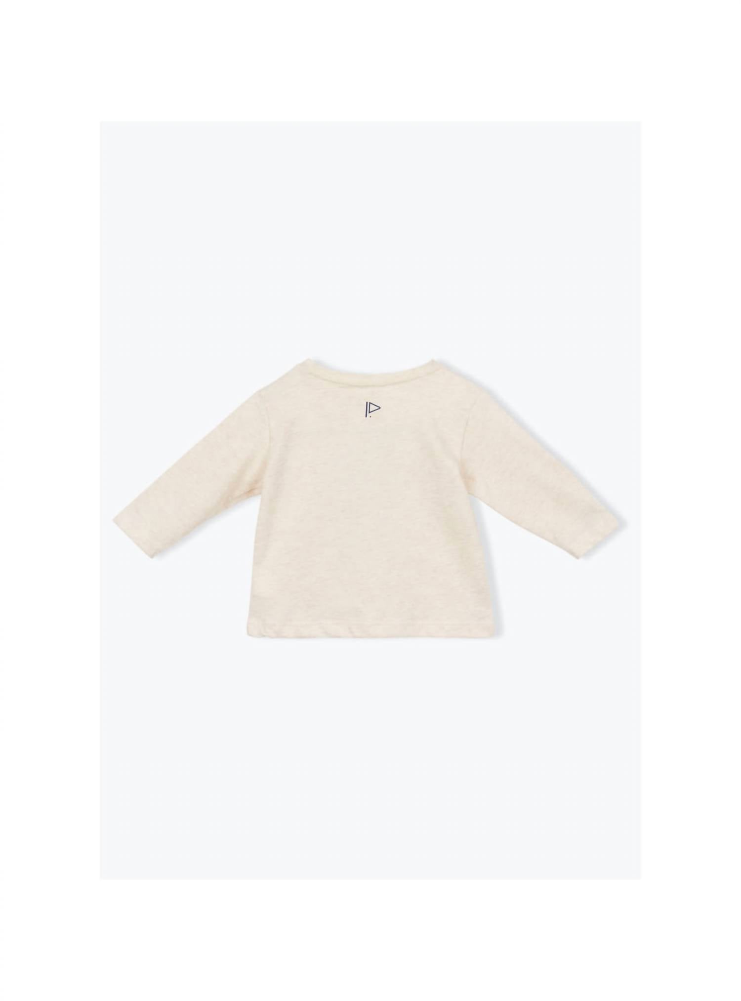 This long sleeve tee is crafted from 100% organic cotton jersey, offering a delightful brushed finish for enhanced softness. Designed with a straight cut and featuring a convenient snap closure on the shoulder, it ensures easy wearability. The playful graphic pattern adds a fun element to this eco-friendly piece.