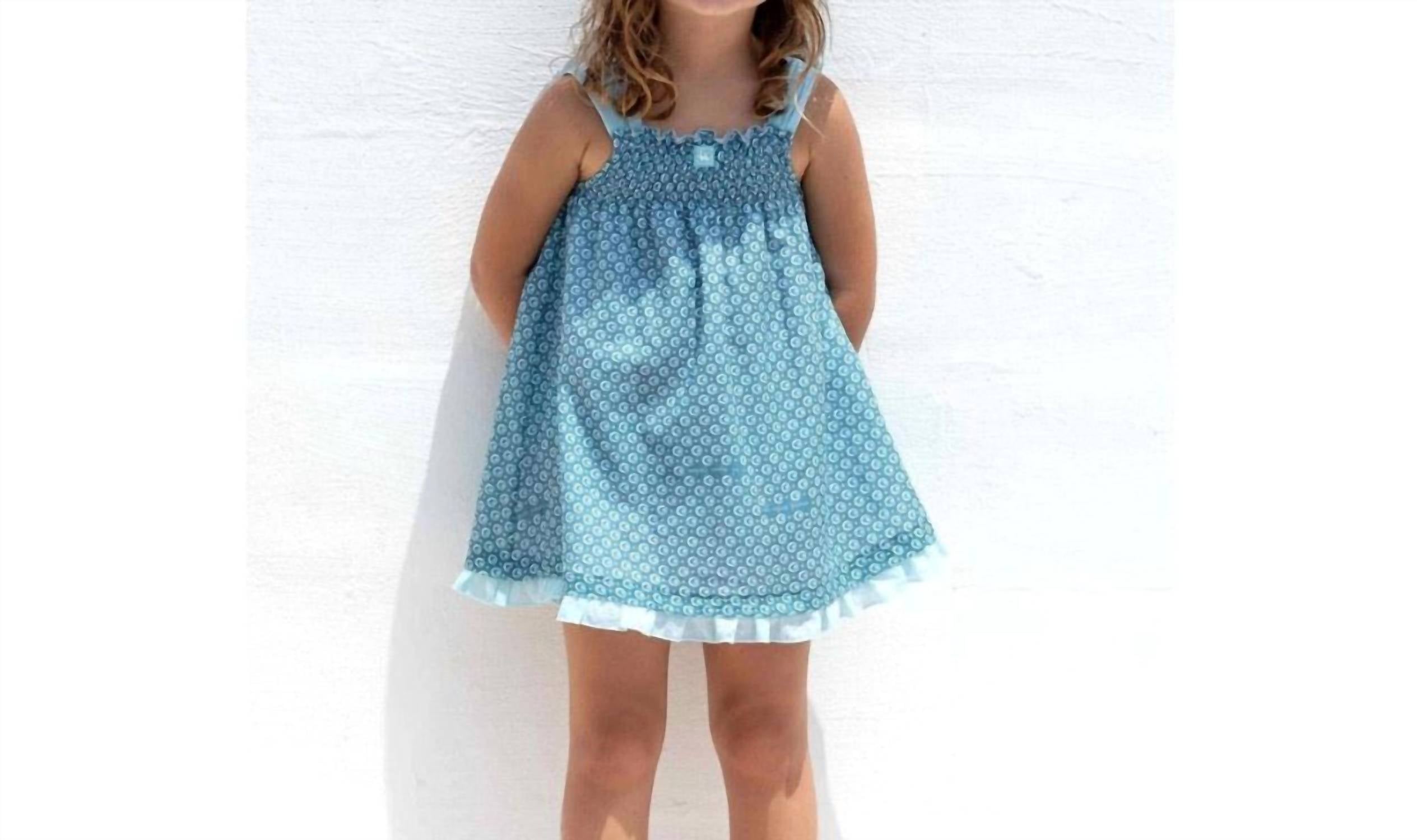 Introducing the Girls Gomas Summer Dress by Al Agua Patos, a must-have for any casual summer occasion. This Boho Chic dress is skillfully crafted from 100% cotton voile, ensuring breathability and comfort all day long. Featuring a charming pattern in the vibrant Aguacates color, the dress boasts a two-tiered skirt with slightly ruffled frills, perfect for a laid-back yet stylish look. Ideal for vacation wear.