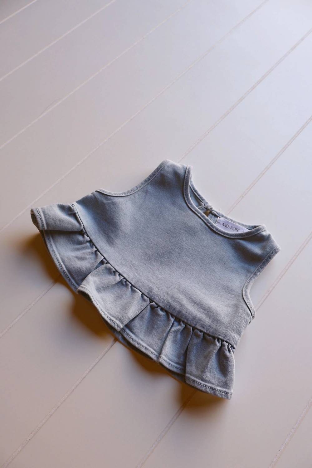 Introducing the Girl's Denim Ruffle Top by Axel & Rose, a chic piece perfect for any holiday party or streetwear look. Designed with a slight crop and crafted from a soft cotton blend, this tank top promises comfort and style. Carefully made in the United States, its machine wash cold gentle care ensures it stays fresh, while line drying and cool ironing maintain its shape. This blue solid-patterned top works seamlessly into any spring wardrobe, setting the stage for a fashionable Thanksgiving.