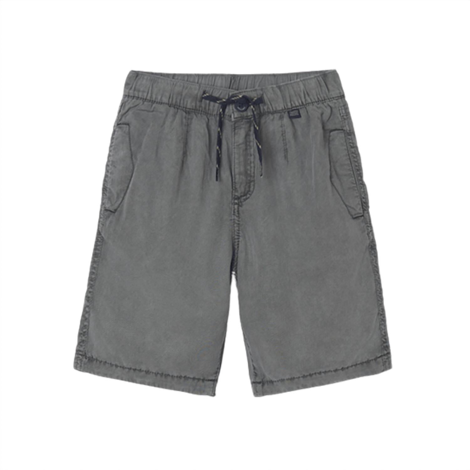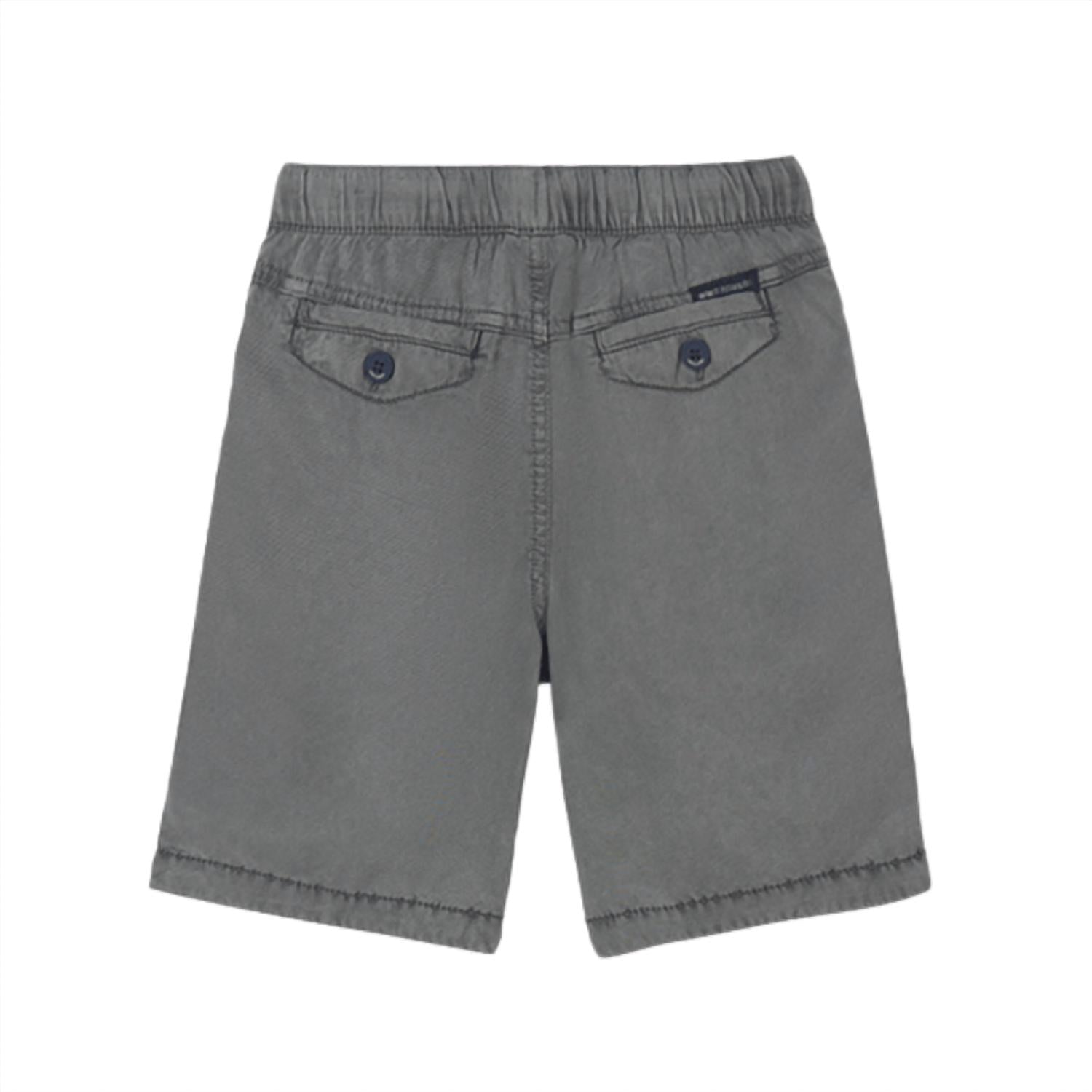 Introducing the Mayoral Tencel Corded Shorts in a versatile Acero color, ideal for warm weather getaways. These boys' shorts are made from 100% Lyocell, offering a super soft and lightweight feel, adorned with a functional drawstring and three practical pockets. They feature a secure zipper with button closure, ensuring comfort and style for vacation outings. Care for these solid, minimalist shorts is made easy with machine wash cold, tumble dry on low, and a cool iron if necessary.