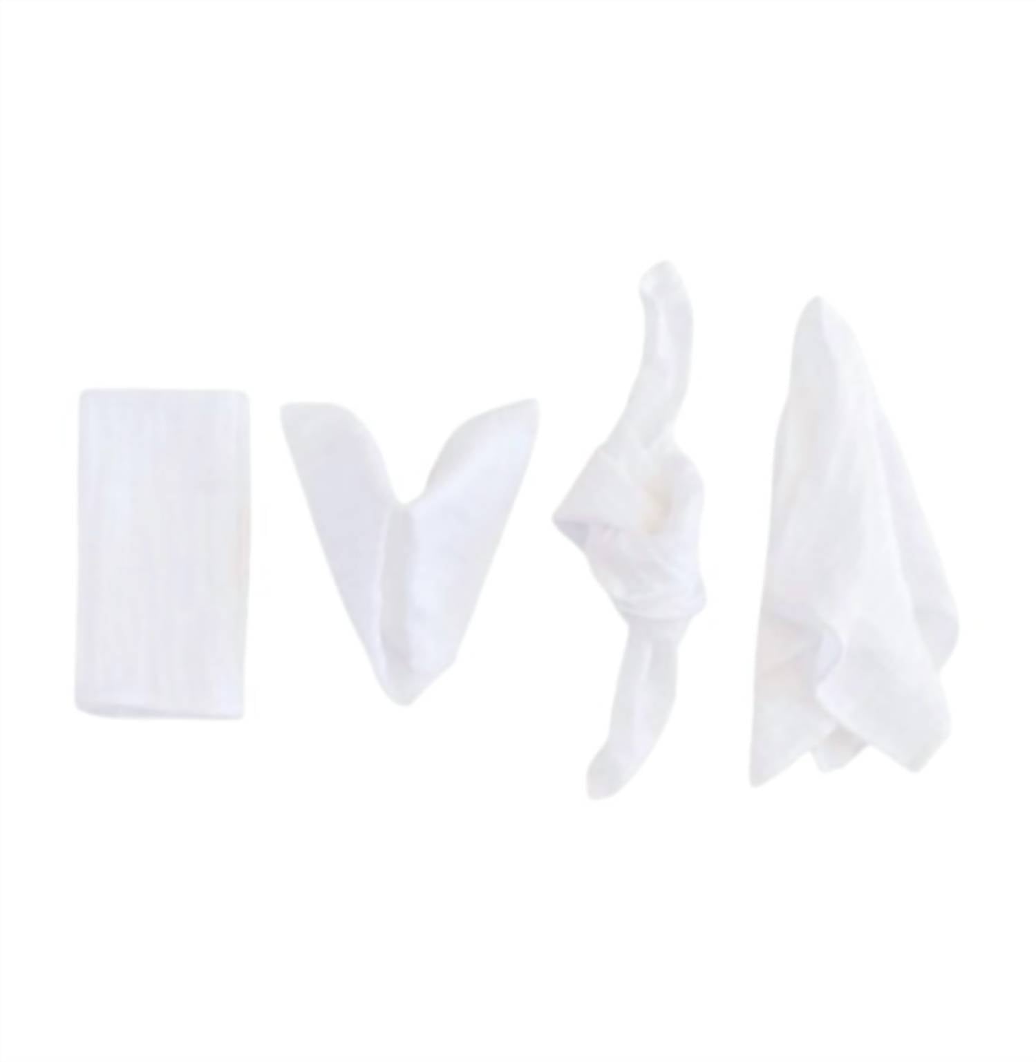 Enhance your dining experience with the Organic Cotton Napkins Set Of 4 by borrowed BLU, featuring a soft, sustainable design perfect for elevated gatherings. Crafted from 100% organic cotton, these napkins come in versatile white, ideal for both everyday and special occasions. With dimensions of 18"x18", they offer a gentle texture and refined finish. Care: Machine wash on a delicate cycle using cold or warm water and tumble dry low.