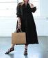 Introducing the Long Cotton Shirtdress by Baacal, a seamlessly elegant addition to your wardrobe in timeless black. Boasting long sleeves and crafted from dead stock Italian 100% cotton poplin, this midi dress offers versatility with a solid preppy style. Made in Los Angeles, it features practical details such as side slits, a sleeve placket, a front shirt pocket, a back pleat, and in-seam side pockets for added function. This shirt silhouette with a button closure is perfect for travel, offering multiple styling options, whether worn loose, belted, or open as a layering piece.