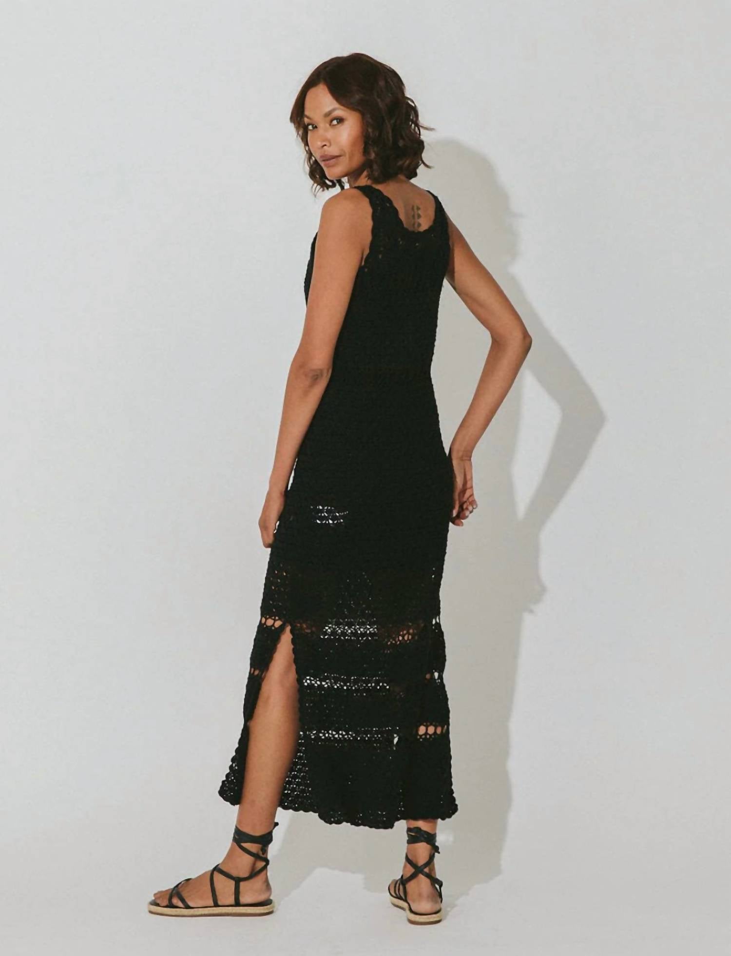 Just add slides or mules and you are good to go. Introducing the Cleobella Diah Crochet Midi Dress, a standout choice for warm weather events, from holiday parties to Thanksgiving gatherings. This textured, sleeveless bodycon dress in black boasts a flattering V-neckline and unique detailing. Made in a comfortable rayon composition, it features a convenient pull-on closure. For care, dry clean only, lay flat to dry, and use low iron as needed.