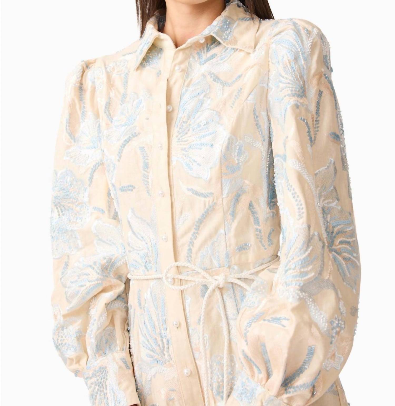 Just add slides or mules and you are good to go. Introducing the Nia Shirt Dress by ELLIATT, an embodiment of elegance and quiet luxury. This stunning floral-patterned shirt dress in white features long sleeves and a classic collar, perfect for spring engagements or an Easter celebration. Made from polyester, it boasts a midi length with practical pockets and a refined button closure for easy wear. With minimal stretch, it offers a true-to-size fit, ensuring you exude grace at any event.