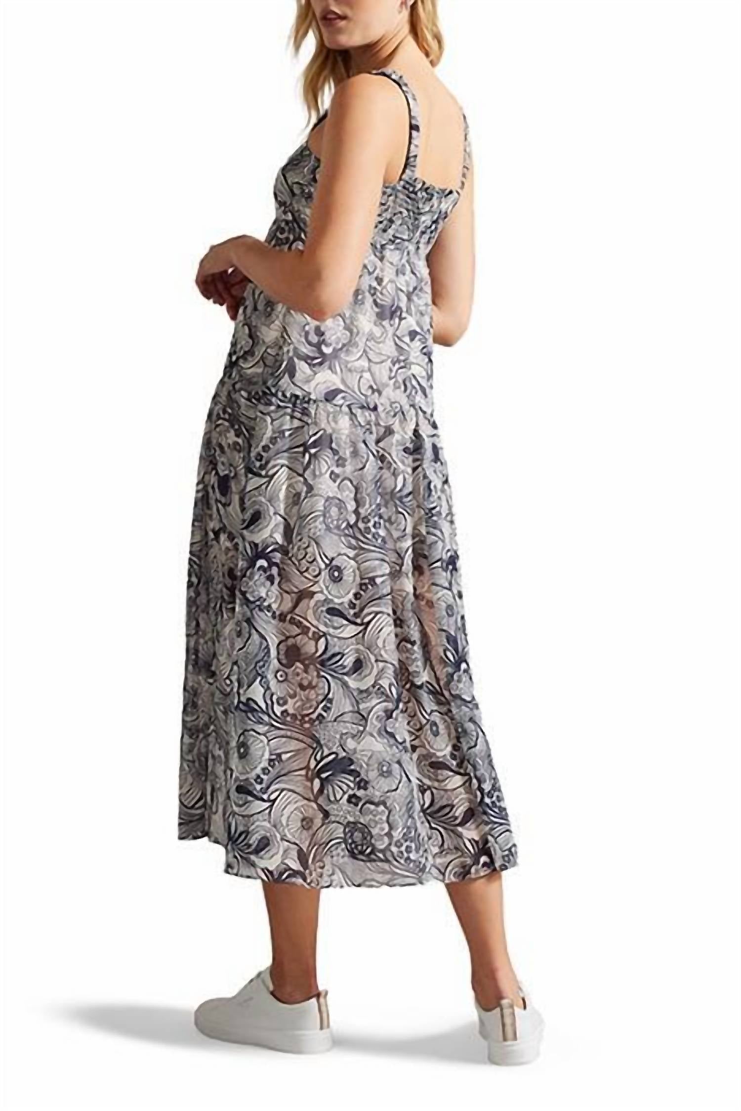 The perfect length dress does exist. Introducing the Adlinah Square Neck Sleeveless Midi Dress by Ted Baker, a stunning addition to your spring wardrobe. This elegant dress features a sleeveless design and square neckline, crafted from 100% polyester with a beautiful multicolor floral pattern against an ivory backdrop. Its A-line silhouette and 51" midi length offer a flattering fit, with a pull-on closure for ease of wear. Care for this piece with a gentle hand wash; it measures 16" across the bust, 14" across the waist, and 21" across the hips, and is perfect for size US 4 (Ted Baker size 1).