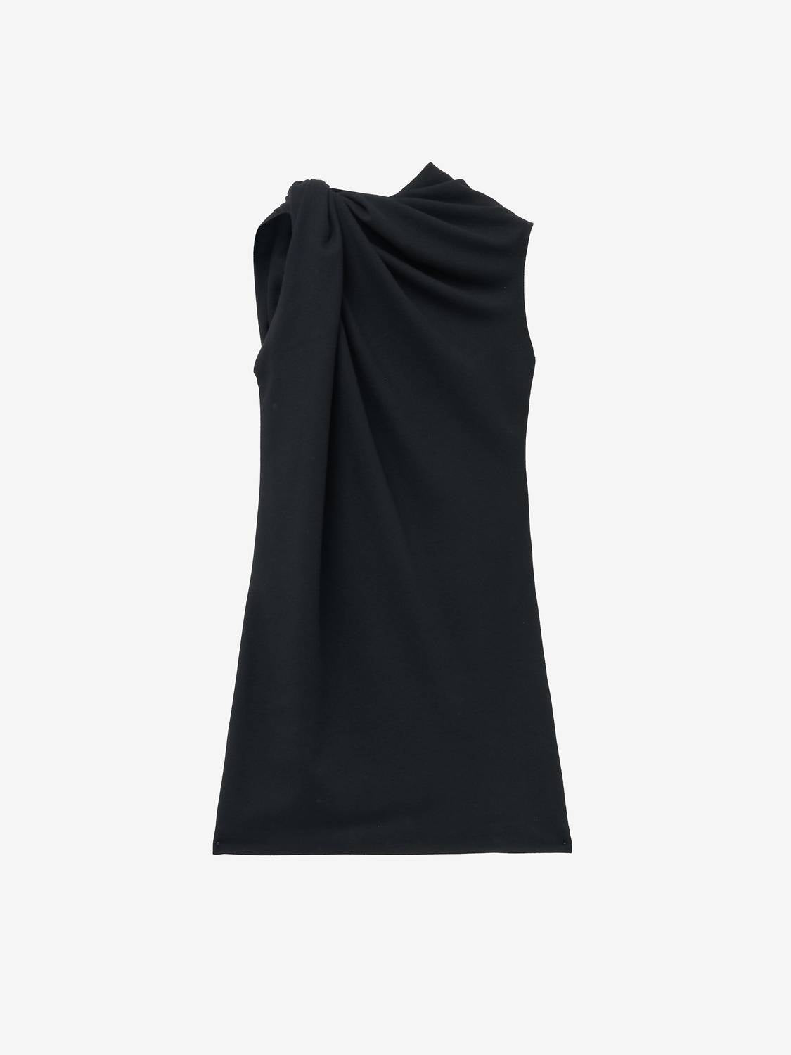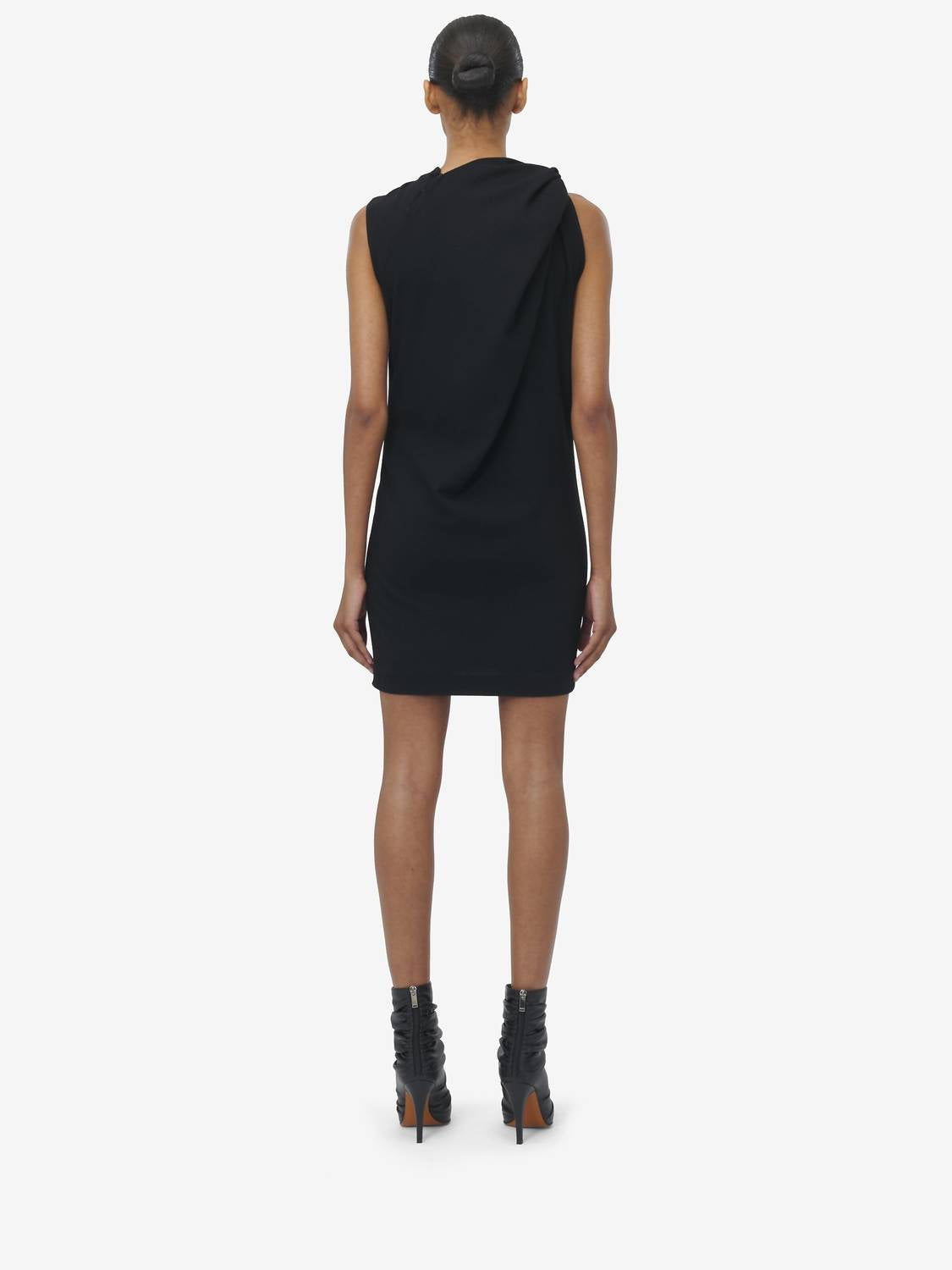The kind of easy and flattering dress you'll be reaching for all season long. Elevate your wardrobe with the Knot Mini Dress by Alexander McQueen, an elegant black mini designed for women who appreciate refined style. This sleeveless shift dress is crafted from 100% wool and features a mock neck with striking knot detailing at the shoulder. The dress fastens with a side zip, ensuring a sleek silhouette perfect for holiday parties or workwear settings. Care: Hand wash and line dry to maintain its refined structure.