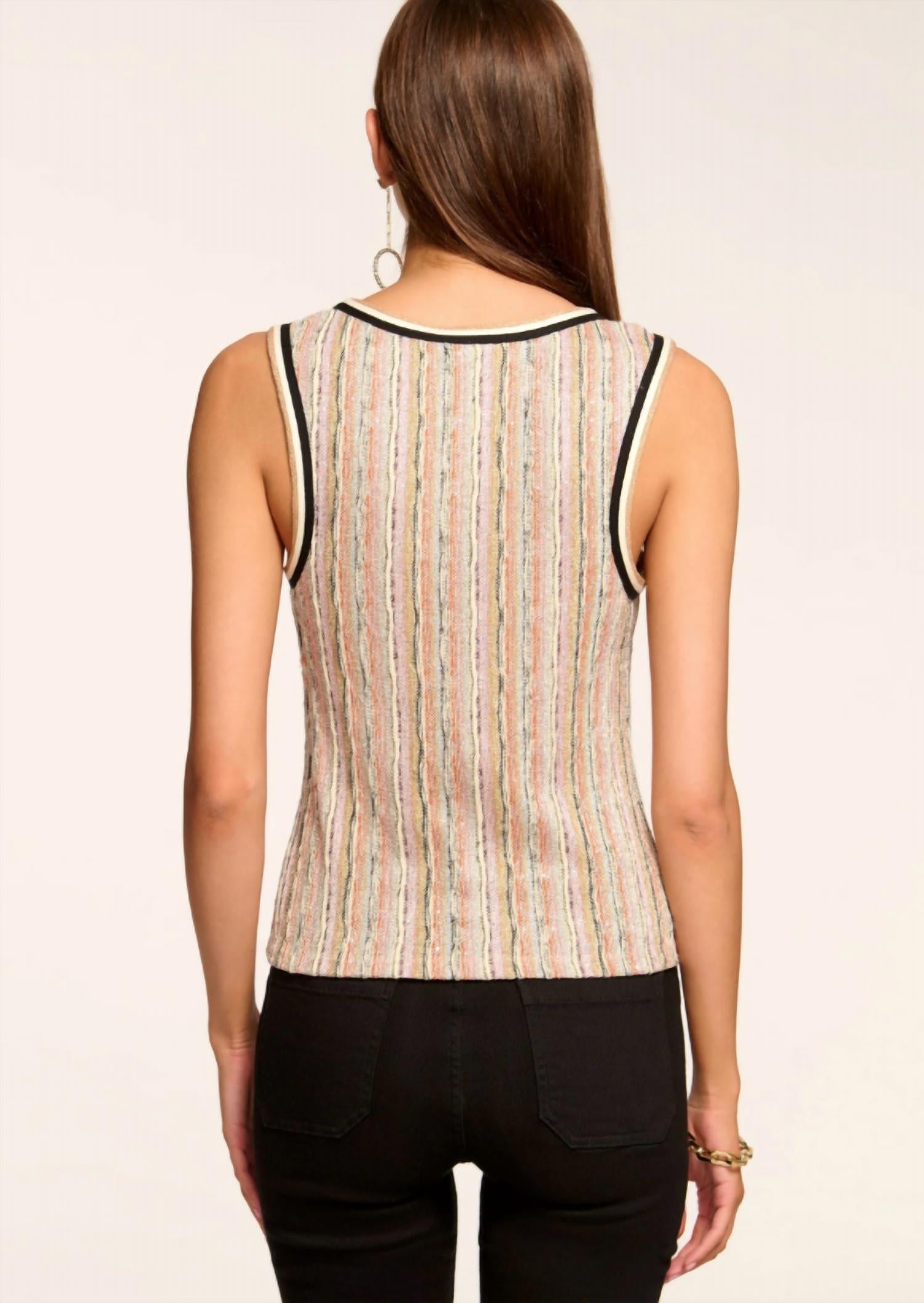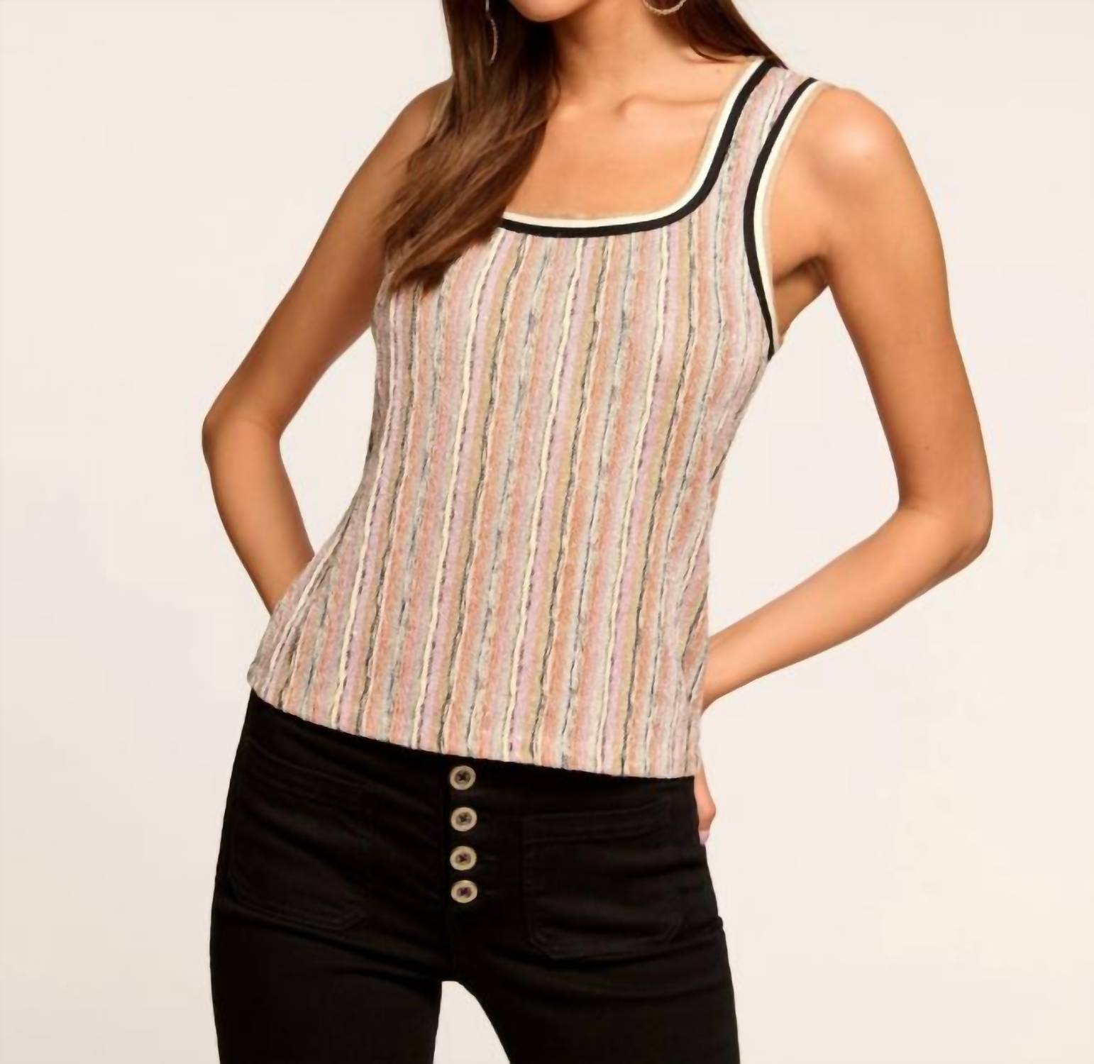 This classic tank top is perfect for layering and cute enough to wear on its own. Dazzle in the Adaira, featuring a shimmering sequin stripe knit with just the right amount of stretch for comfort and movement. This sleeveless style boasts a flattering scoop neckline and bra-friendly fit, making it perfect for every day oufits or a night out.