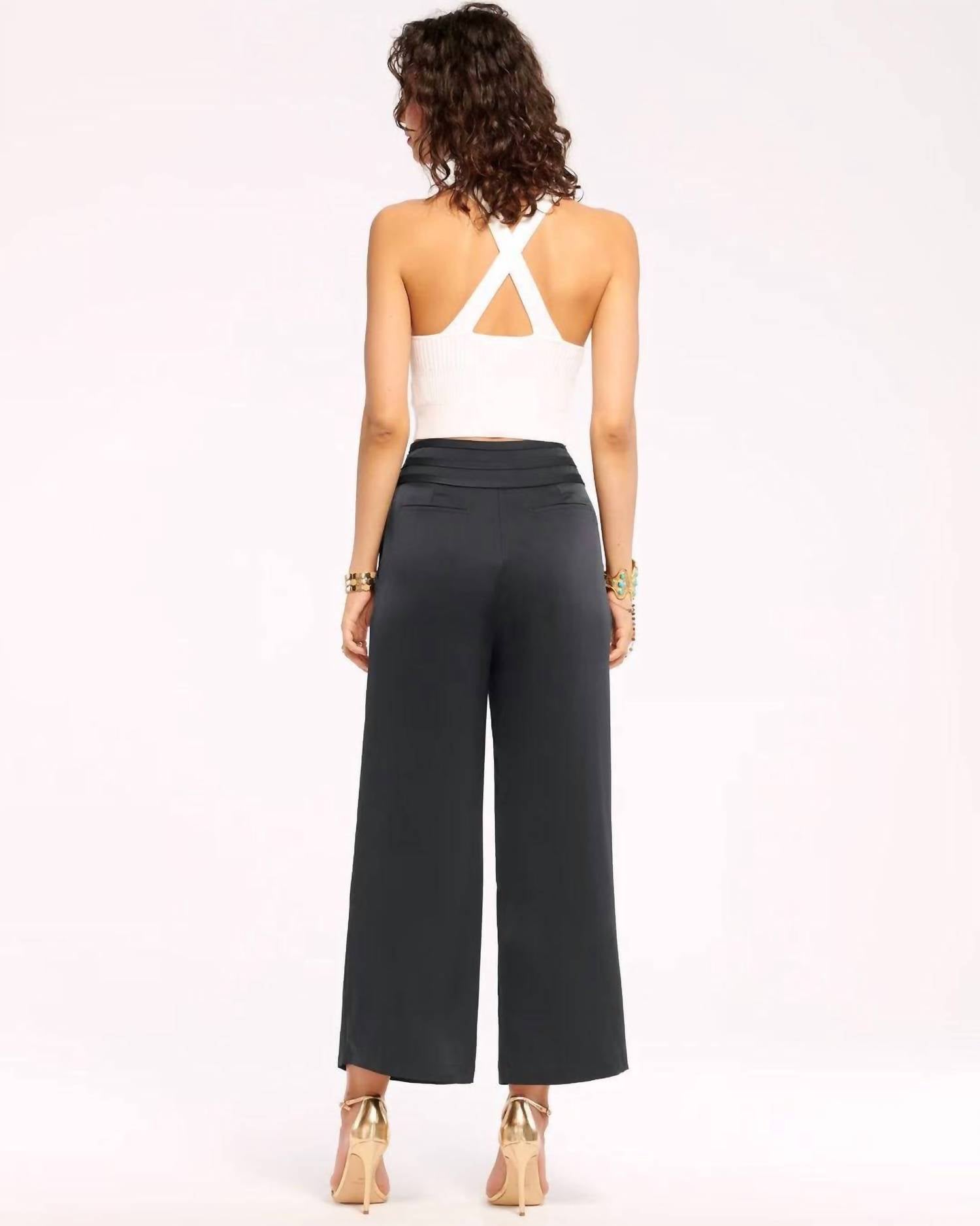Stay on-trend and showcase your impeccable taste with these adaptable and stylish cropped pants. The perfect length to wear with your favorite mules. You'll love the fit! Elevate your wardrobe with the Cropped Joss Pant by Ramy Brook, a stylish choice in classic black. Designed for women, these solid high-rise pants offer a relaxed fit with a wide-leg style, perfect for workwear or an engagement event. Made from 100% polyester, they feature a convenient pull-on closure. Care for these pants by dry cleaning to maintain their elegant look.