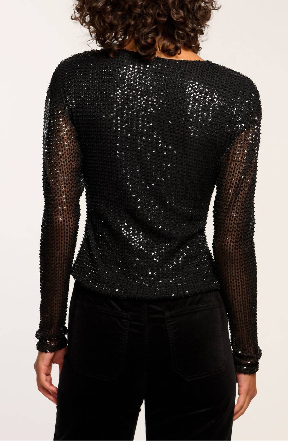 A versatile blouse that works from desk to dinner! The Leon Beaded Top by Ramy Brook effortlessly combines glamour and elegance, making it a standout piece in any wardrobe. This top features long sleeves and a daringly dipped cowl neckline, with allover sequins that shimmer beautifully in the light. Made from 95% polyester and 5% spandex, it is designed for style and comfort. Closure is a pull-on style, and care is simple with a dry clean requirement.