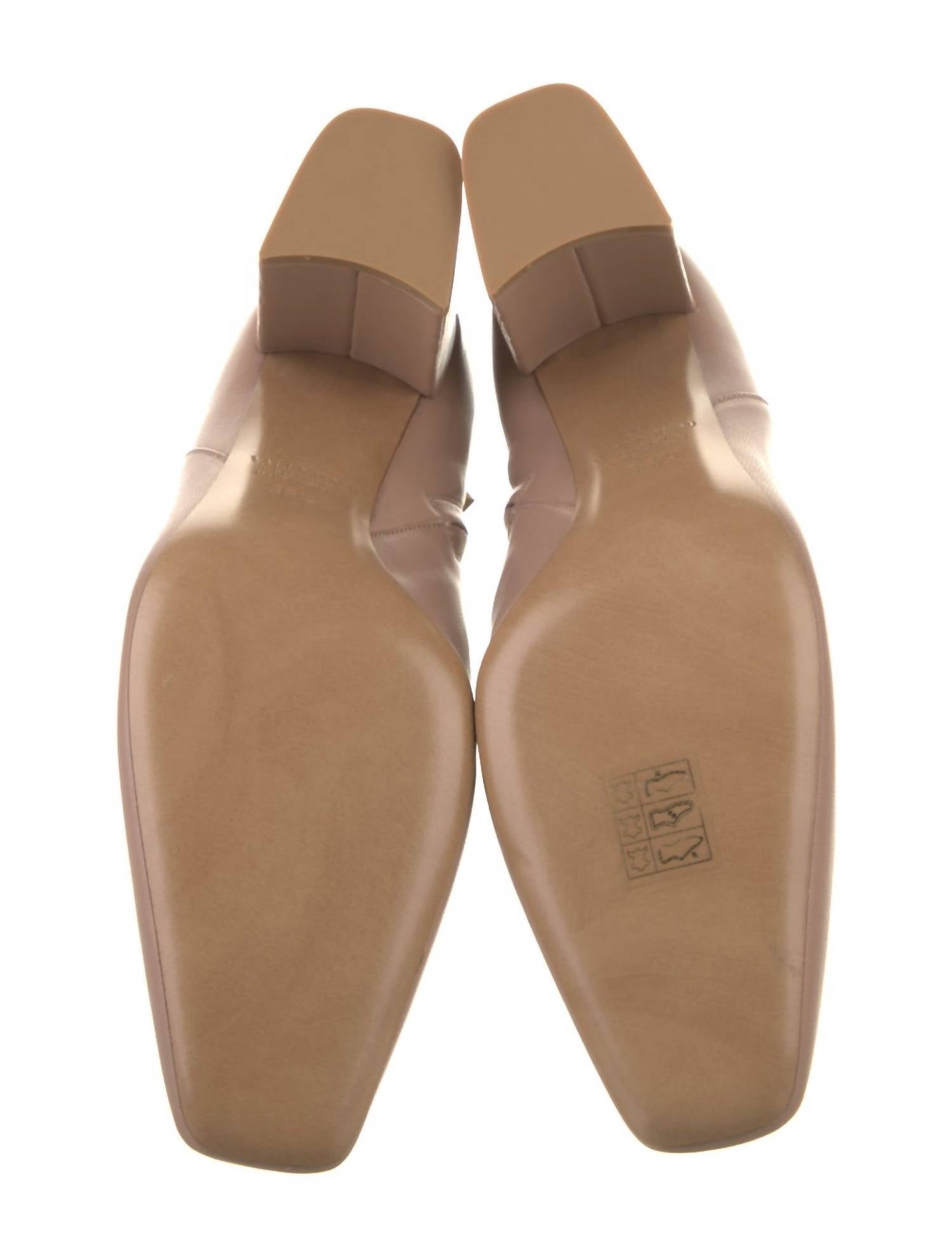 Elevate your style with the Women's Rockstud Leather Boots by Valentino Garavani, crafted in Italy in a sophisticated Rose Cannelle shade. These boots feature a squared toe and a high 3.5" block heel, perfectly designed for making a statement at music festivals. Made from 100% Nappa leather, they include a side zip fastening and decorative buckle detail, along with a practical pull-tab at the heel.