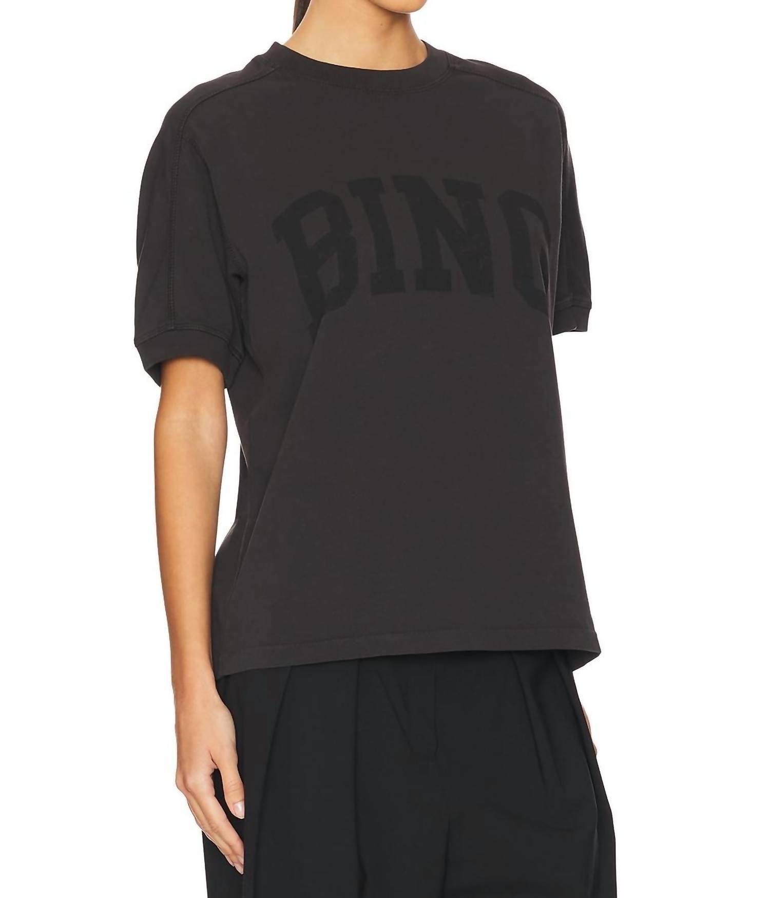 Introducing the Jaylin Bing Tee by ANINE BING, a stylish addition to any wardrobe with its vintage black hue and on-trend streetwear appeal. This tee is crafted from 100% cotton, offering short sleeves and a crewneck for a classic look, and features a distinctive front graphic. Made in Turkey, it boasts a midweight jersey fabric, ensuring comfort and durability. Closure is a convenient pull-on style, and it's machine washable for effortless care.