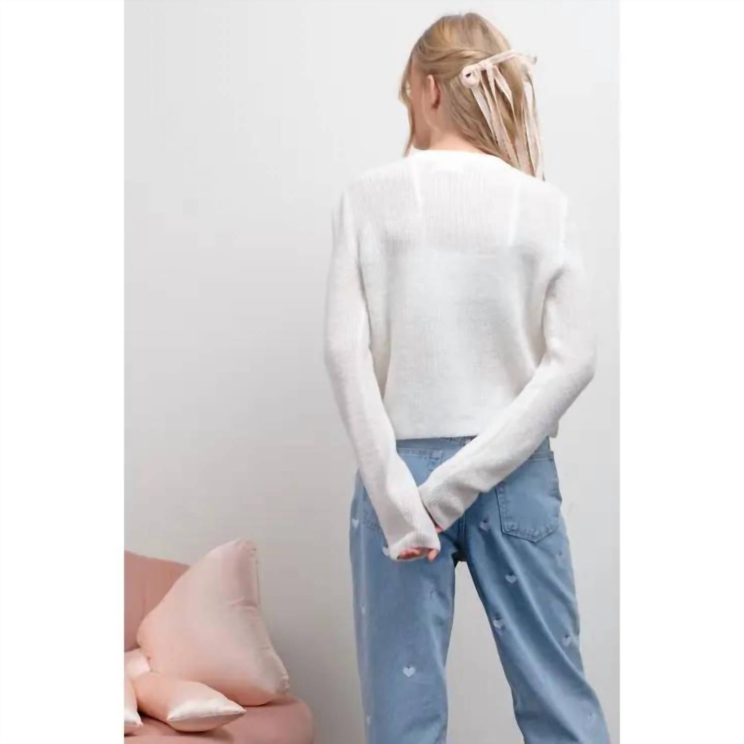 This cardigan will be a sweater-rotation favorite. Embrace whimsical elegance with the Front Bow Cardigan by Blu Pepper, designed in a charming cream hue. This cozy, solid knit cardigan features long sleeves and a crewneck, enhanced by a delightful front ribbon bow and self-tie closure for playful styling. Crafted from a blend of acrylic, nylon, and wool, this piece ensures comfort with its non-lined, relaxed fit. Care for this cardigan by hand washing and laying it flat to dry.