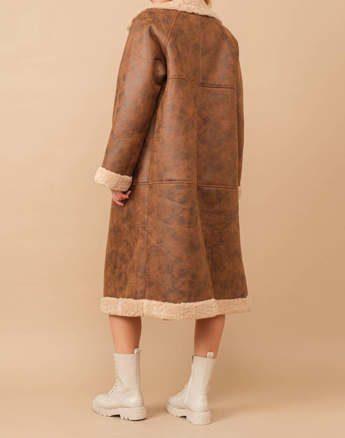 A timeless classic. You'll be reaching for this trench every season. Introducing the Faux Teddy Shearling Cozy Coat by Blue B, a fashionable choice for winter gatherings. Featuring long sleeves and a solid brown hue, this trench coat embraces quiet luxury with a soft faux shearling material. It comes complete with a collar neckline and convenient button closure, perfect for Thanksgiving dinners or any stylish winter occasion.
