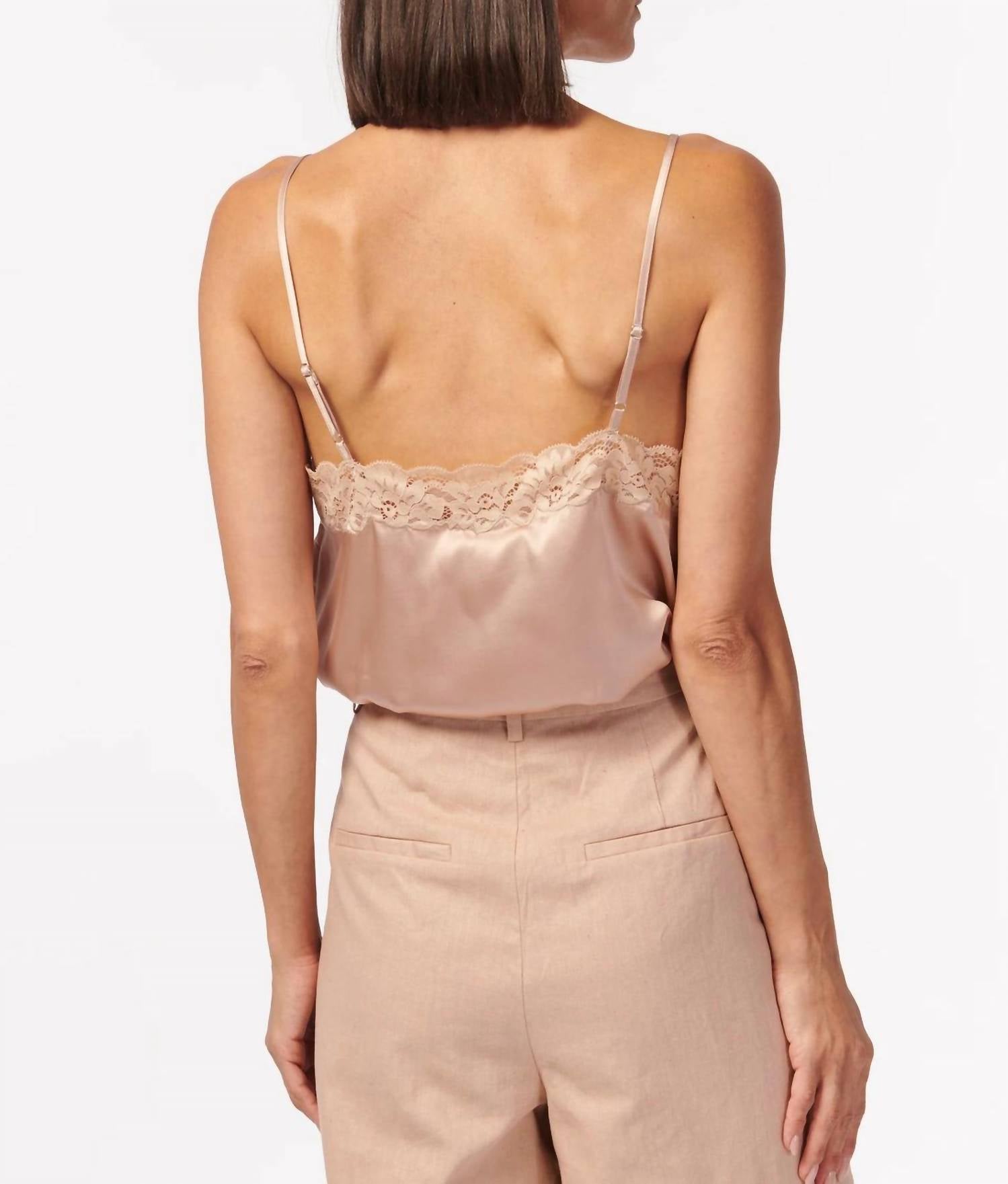 Tuck this cami into your favorite pair of jeans for a casual yet polished look. The Rivera Camisole Top by Cami NYC is an exquisite addition to your spring wardrobe in a chic clay hue. Designed with spaghetti straps and a flattering V-neck, this piece showcases sheer lace detailing at the front and back neckline, adding a touch of elegance. Made from 100% Silk Sandwash Charmeuse, it ensures a luxurious feel against the skin. It features a pull-on closure and side seam hem slits for easy, breezy wear. Care is simple with dry clean and steam only instructions.