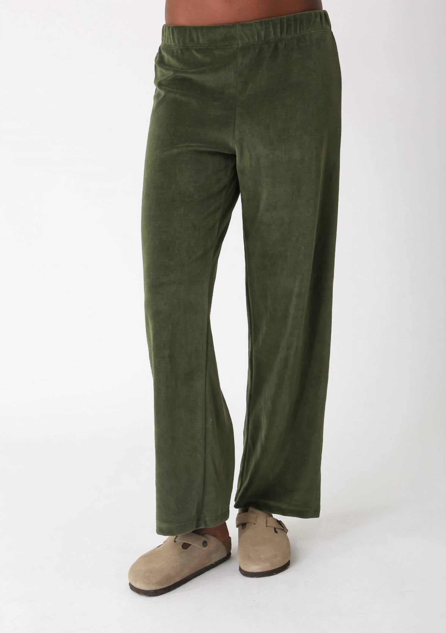 A perfectly tailored straight leg that you'll want in every color! Experience the relaxed comfort of the Wylie Velour Pant by Electric & Rose, a chic option perfect for any holiday party. Designed with practicality in mind, these straight-leg pants feature a convenient pull-on closure and handy pockets. Made from an 85% cotton and 15% polyester blend, with care instructions that include machine washing and low-temperature tumble drying, these pants offer both style and ease. Hand-dyed with care in the USA, they come crafted in a casual low-rise fit, effortlessly merging trendiness and comfort. Model is 5'9" and wears a size small.