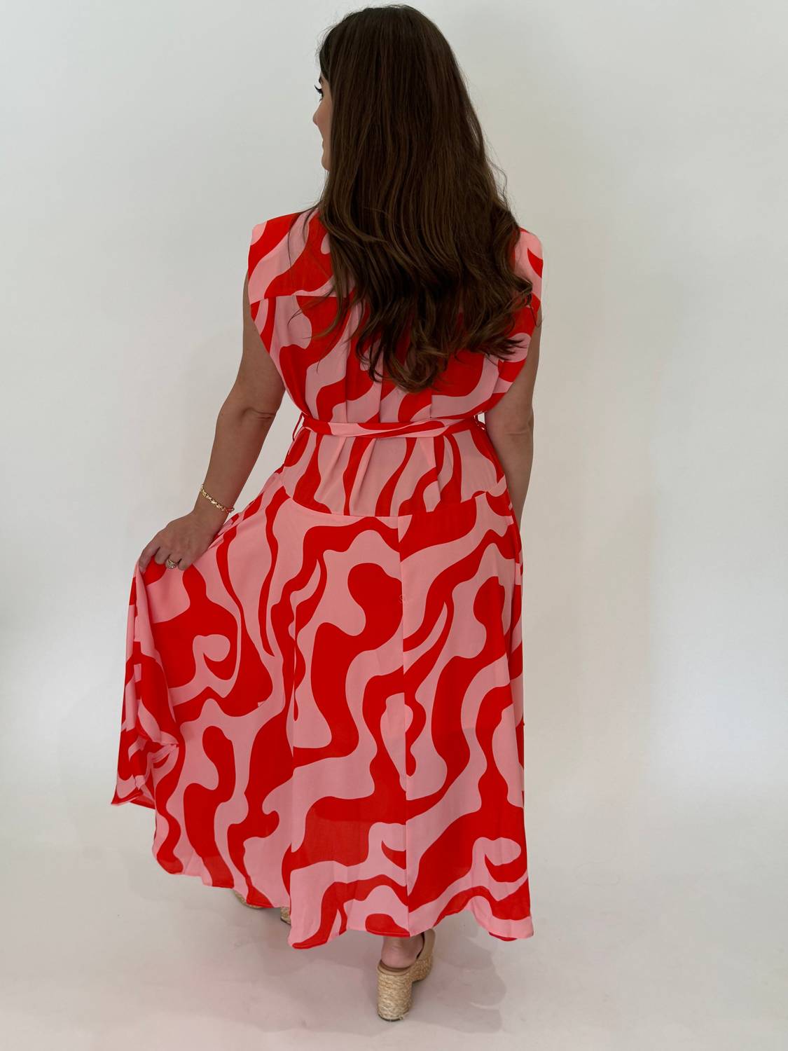 A midi dress so versatile, your options for wearing it are endless. Embrace summer vibes with the vibrant Leeann Dress by Entro, designed for standout style at any event. This sleeveless, patterned shirt dress in eye-catching pink and red, offers a relaxed fit featuring functional button closure and handy pockets. Crafted from polyester, it sports a chic collar neckline that nods to 90s fashion. Ideal for vacation or Thanksgiving gatherings, it pairs a mid-length silhouette with effortless flair.