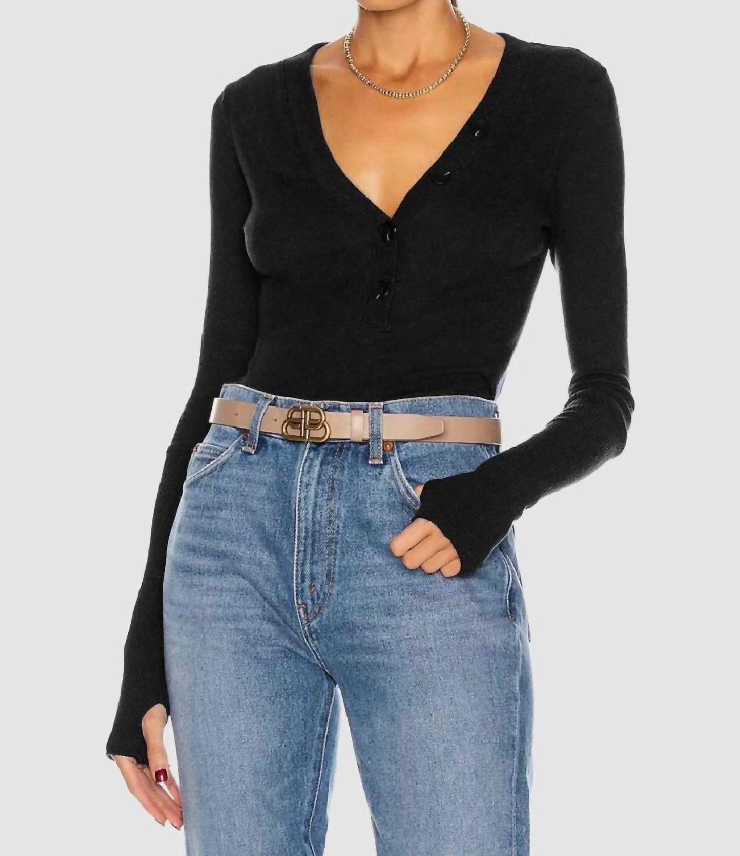 The perfect long sleeve tee that goes with just about anything. Experience luxurious simplicity with the Cashmere Long Sleeve Henley Top by Enza Costa, crafted from a sumptuous blend of 85% cotton and 15% cashmere. This semi-sheer piece, made in the USA, showcases long sleeves with exaggerated rib knit cuffs featuring raw cut edges for a touch of effortless chic. Closure is achieved with a partial front button style, seamlessly blending elegance with practicality. Care for your garment by hand washing to maintain its exquisite texture and fit.
