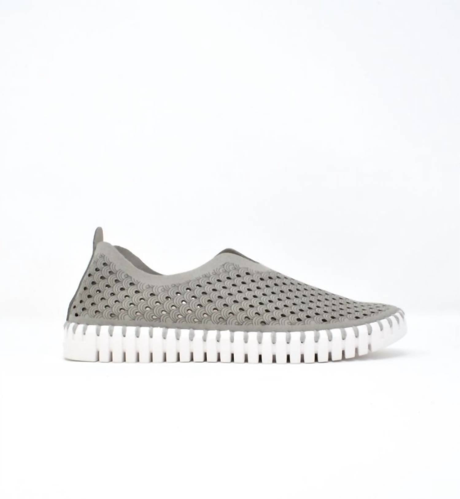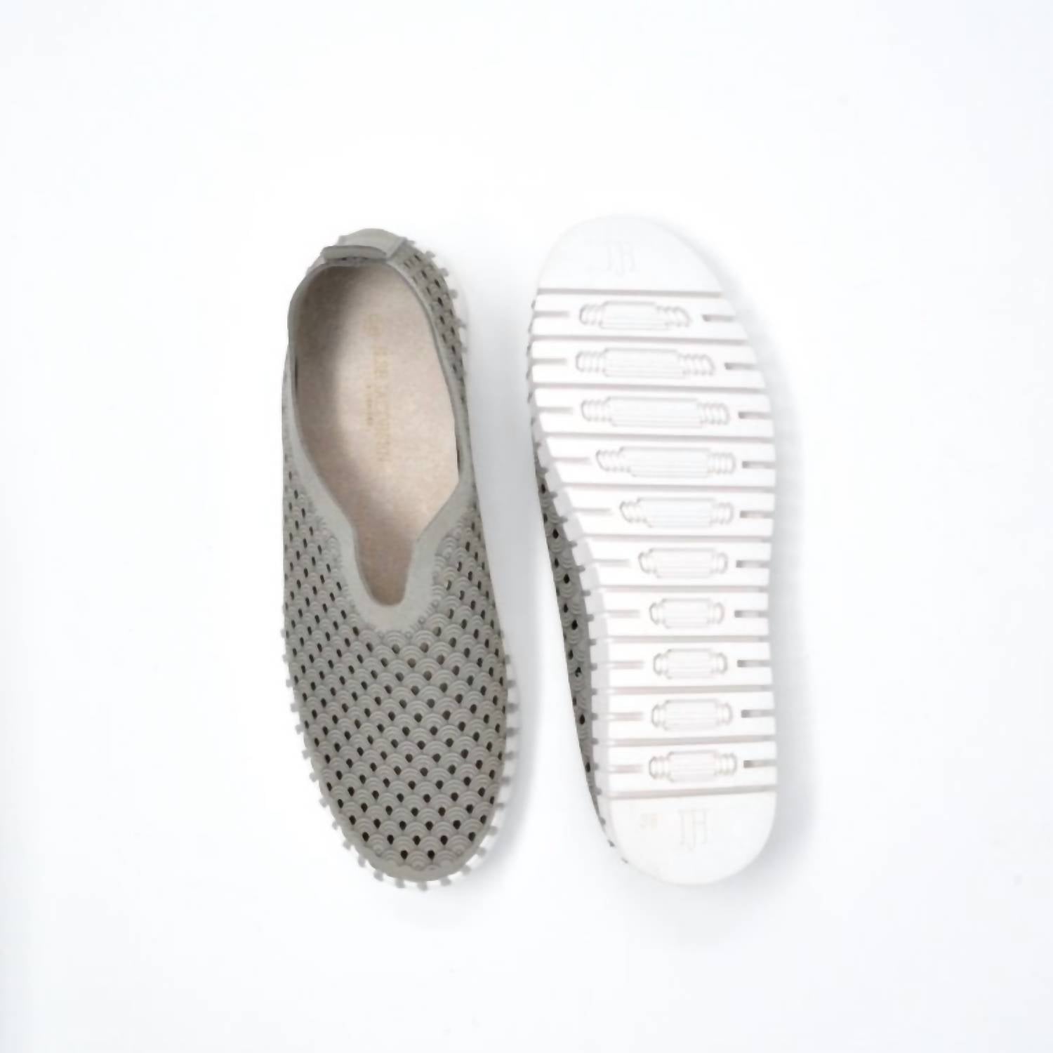 When fashion and function come together seamlessly. These casual, airy shoes are designed for comfort and sustainability. Made with a breathable recycled microfiber upper and detailed with a laser-cut design, they feature stitched construction without glue, a removable leather footbed, and a flexible sole crafted from natural rubber.