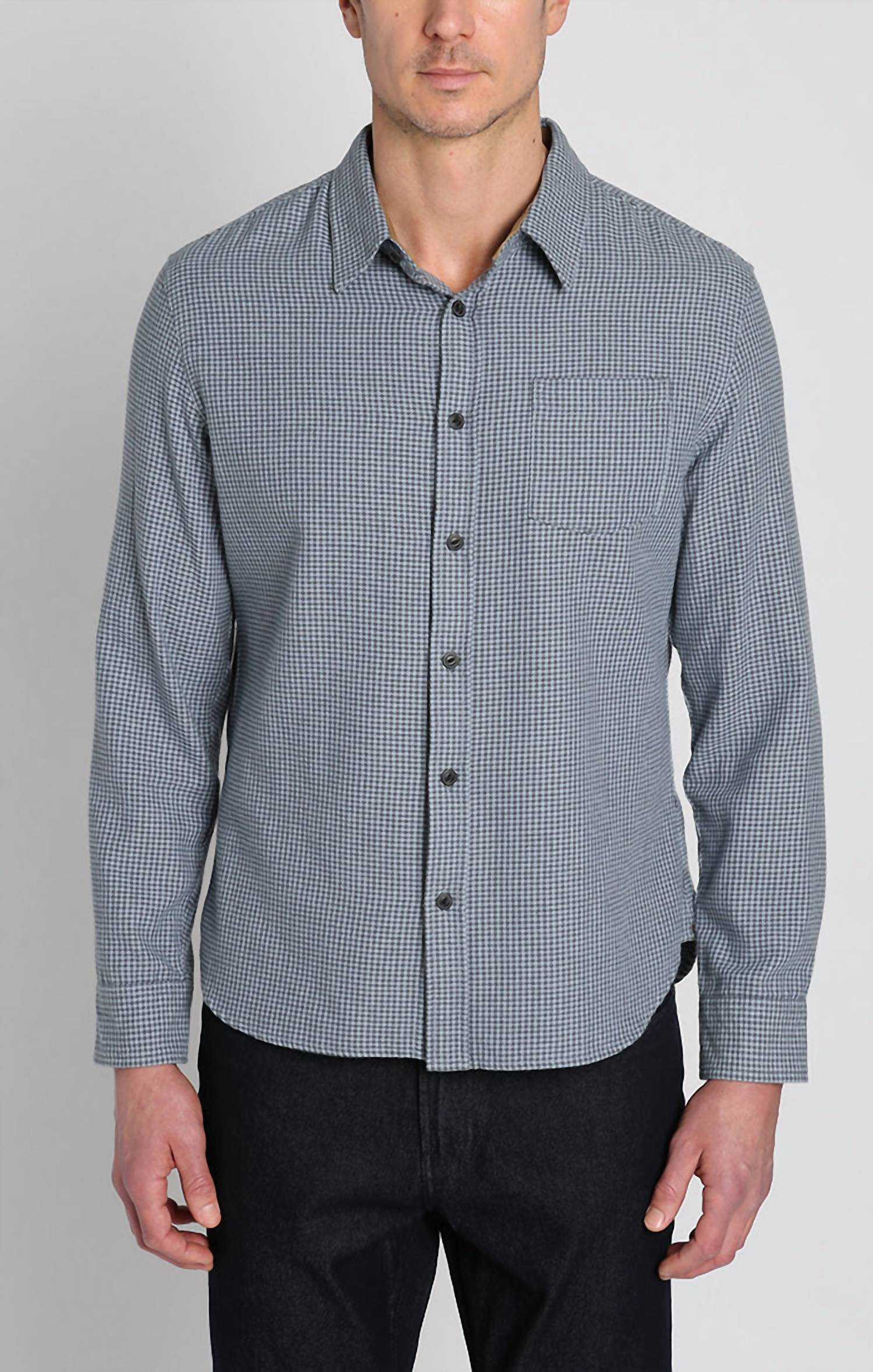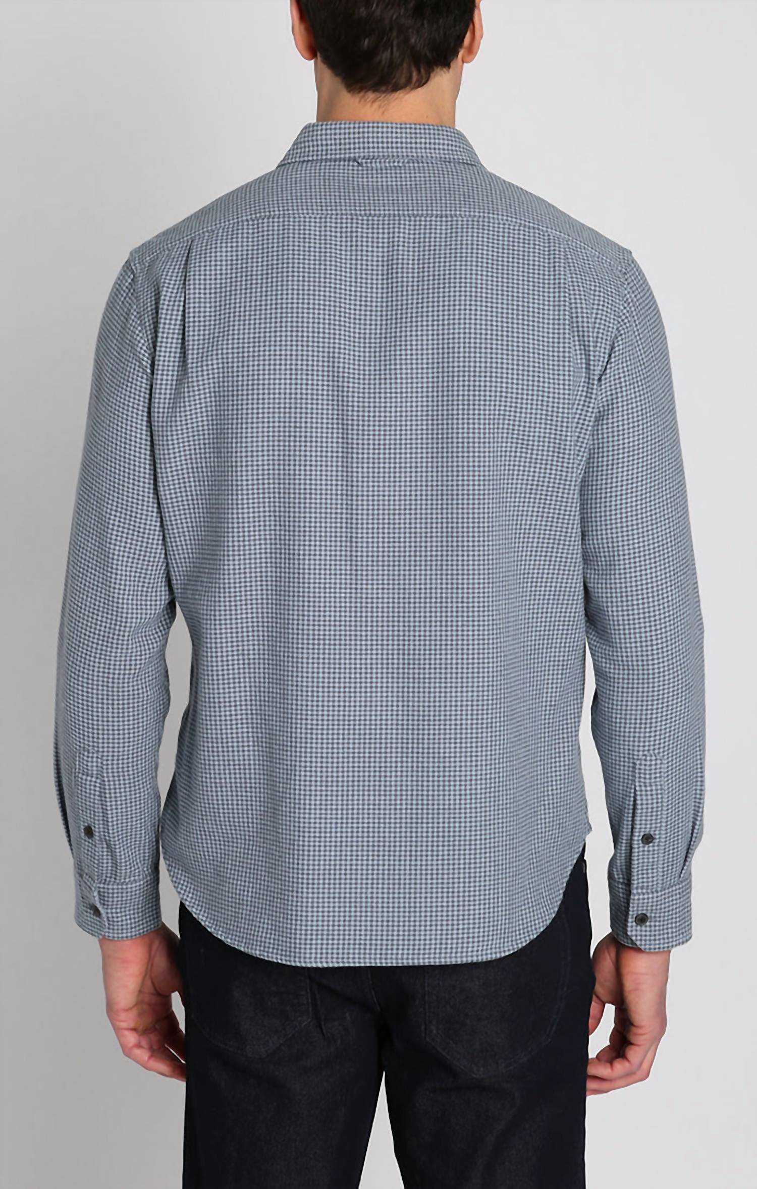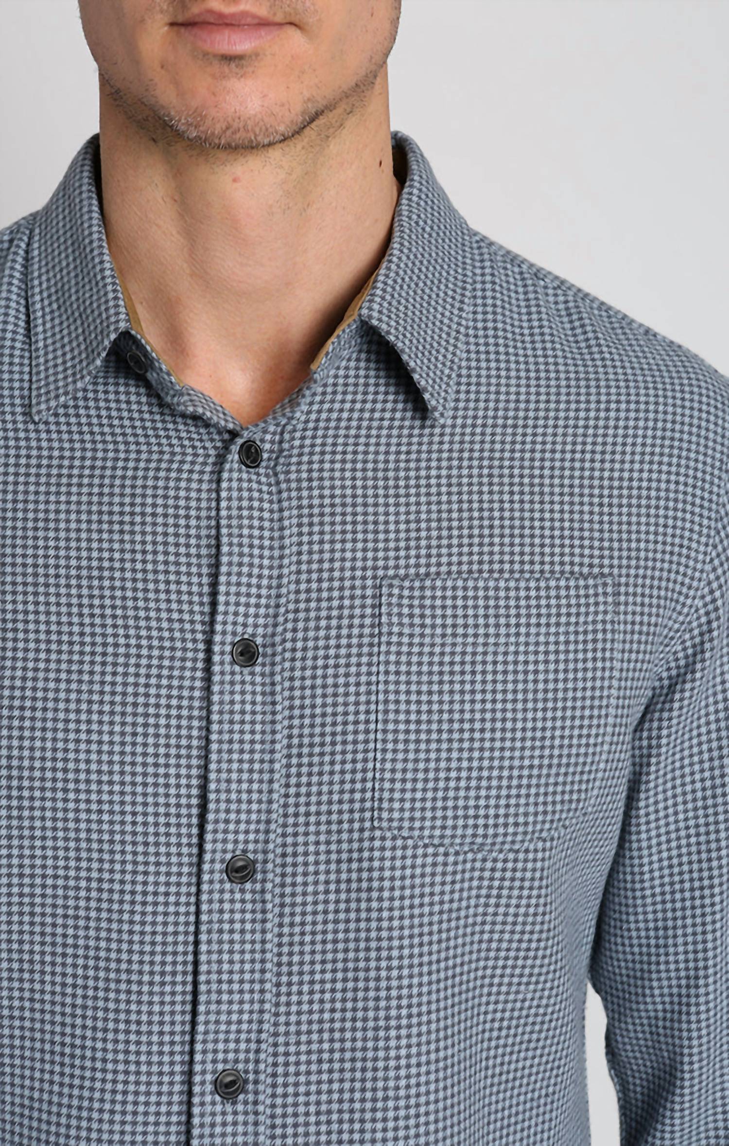 The Manor Brushed Twill Flannel Shirt by JACHS NEW YORK is a must-have for any men's wardrobe, offering a sophisticated blue micro plaid pattern. It features long sleeves and a classic one-pocket design, crafted from a comfortable cotton blend (68% Cotton, 32% Polyester). This imported shirt closes with buttons and is perfect for various settings, from the office to casual weekends, and pairs well with the fall's vintage trend. The mid-weight 6oz flannel material ensures both style and durability.