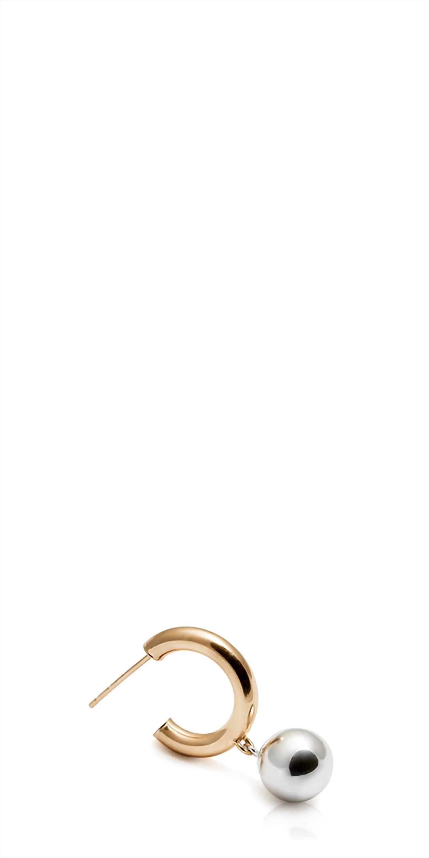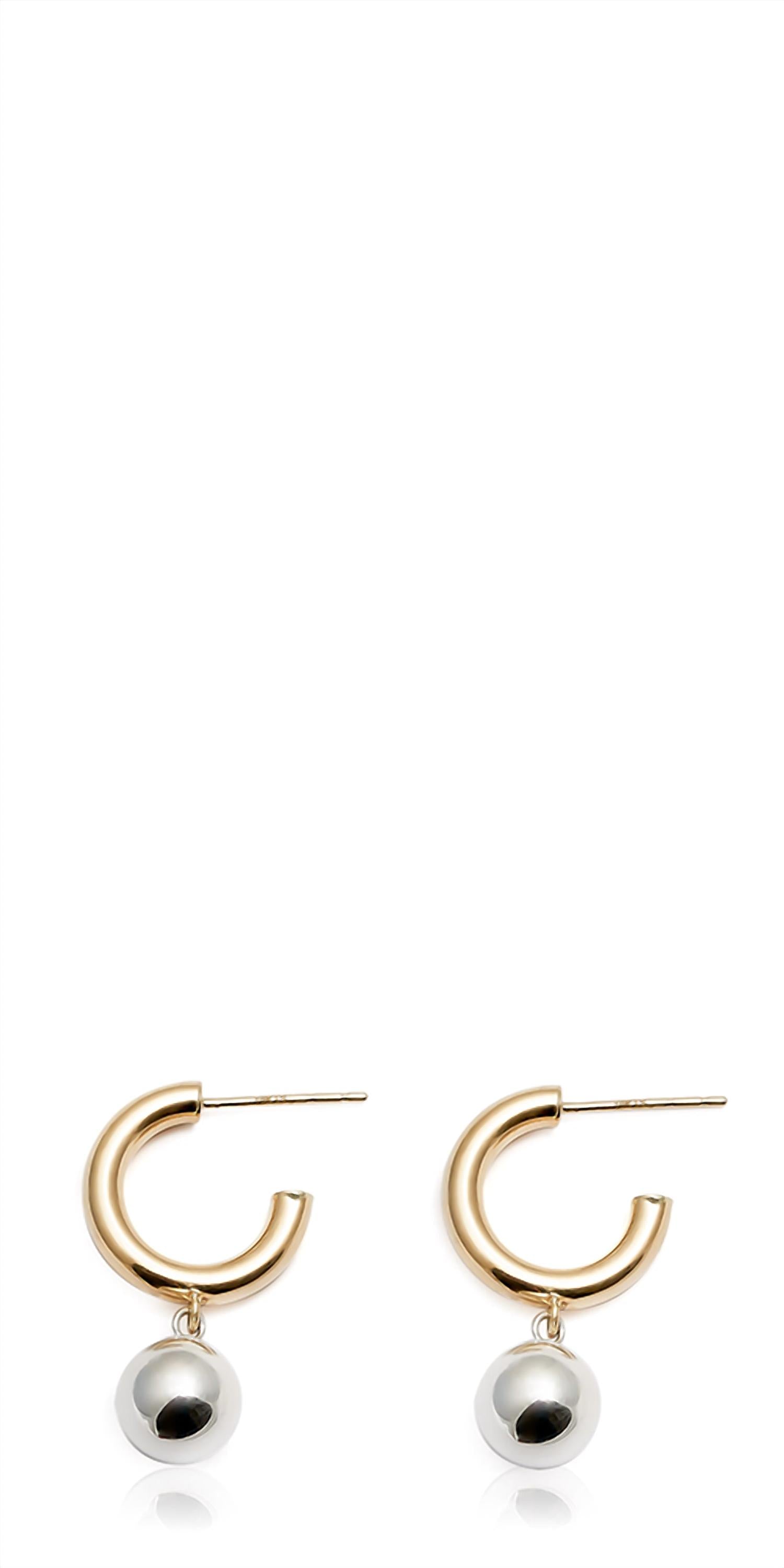 eye-catching earrings for every occasion. Introducing the Ga-Ga Chubbie Huggies by Loren Stewart, an elegant mix of gold and silver perfect for every occasion. These earrings feature 10 karat yellow gold huggies with a sterling silver ball, measuring 8mm in diameter, adding a chic twist to any look. The earrings have a 0.65" diameter and a 3mm width, providing a delicate yet distinctive presence. Crafted in Italy, these come with a post-back closure ensuring secure wear.
