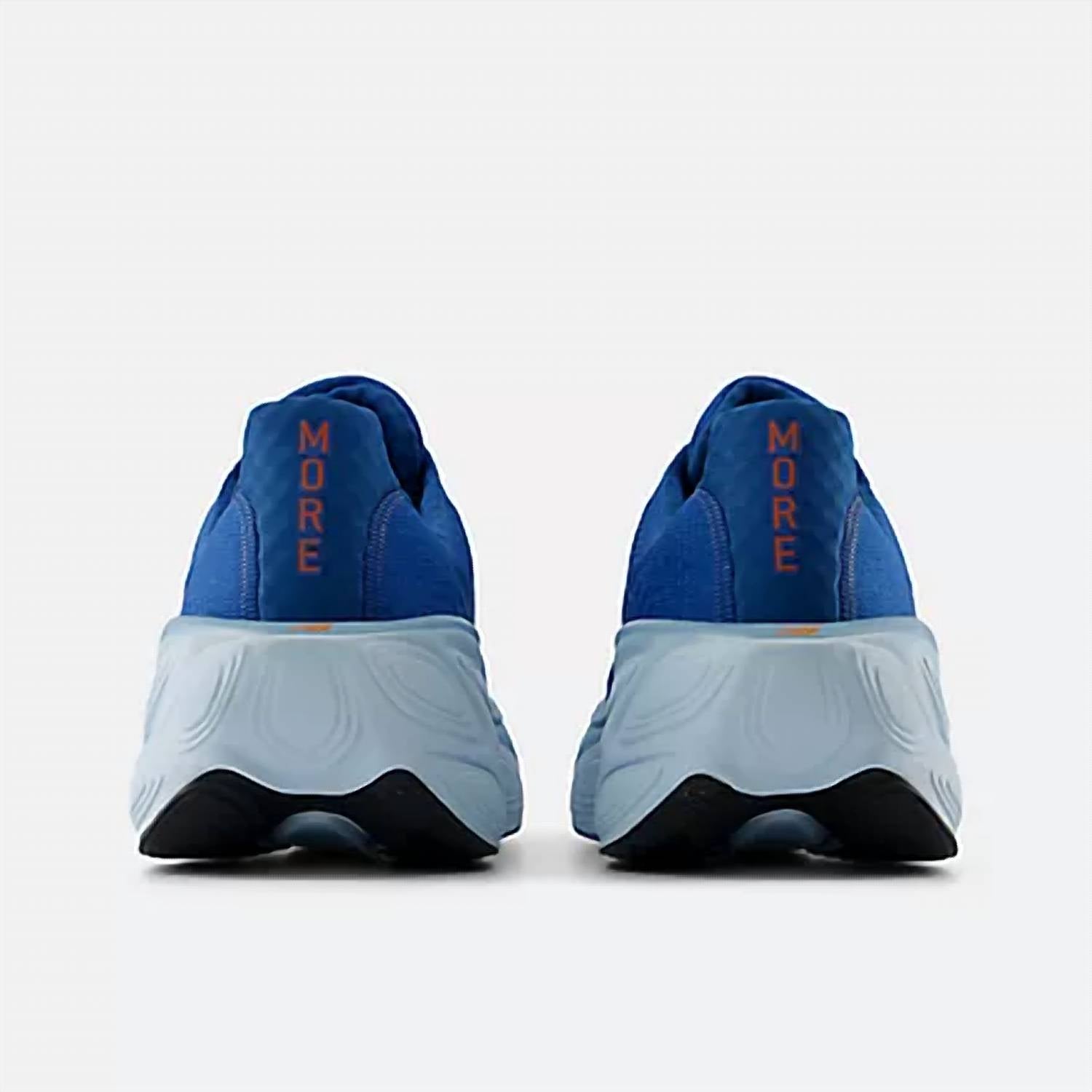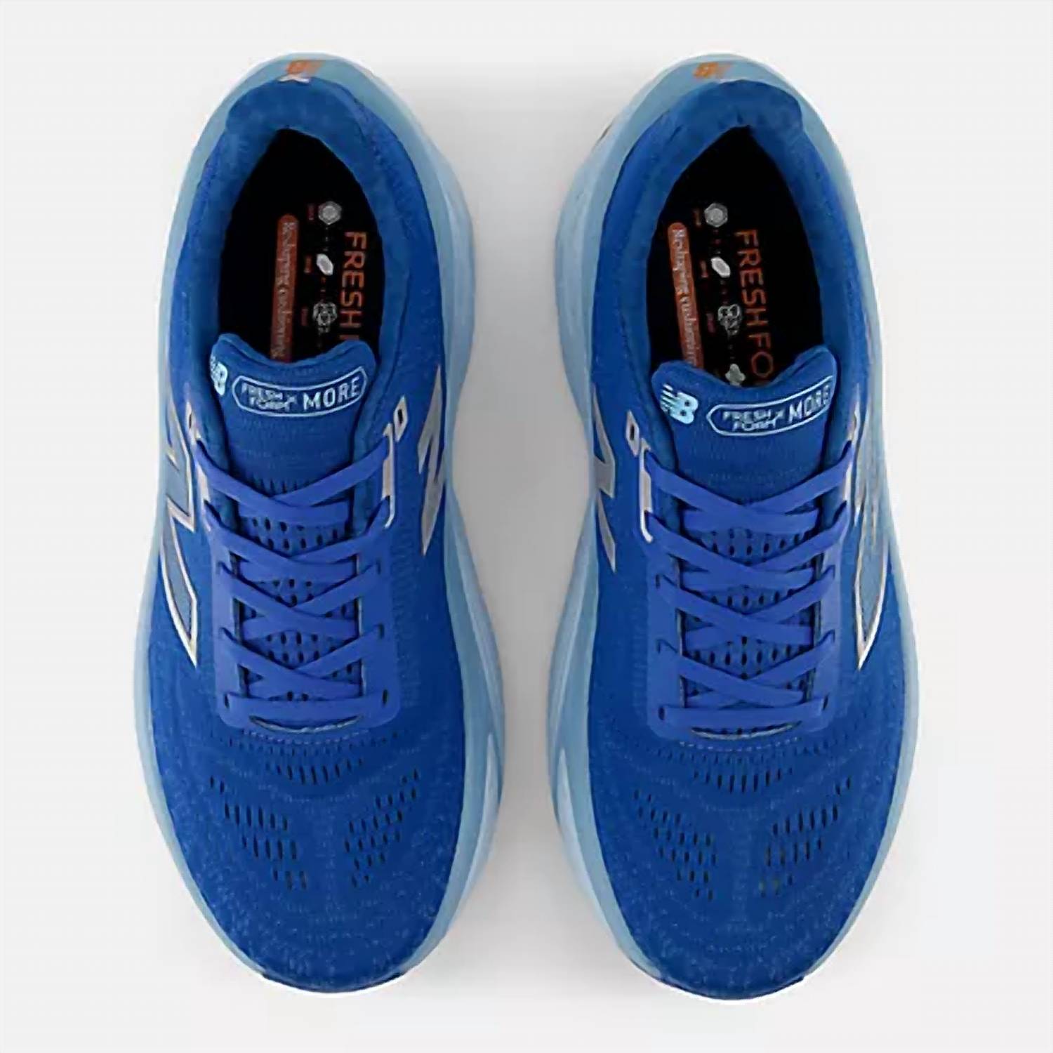 Discover the New Balance Men's Fresh Foam X More V5 Sneakers, engineered for exceptional comfort and style. Designed in an eye-catching Blue Agate and Quarry Blue with Silver Metallic accents, these athletic shoes boast an almond toe shape perfect for summer athleisure trends. Featuring the Fresh Foam X midsole foam with approximately 3% bio-based content, it offers the most cushioned experience for your workouts. Ideal for fitness and workout sessions, these sneakers are a great choice for style and performance on the go.
