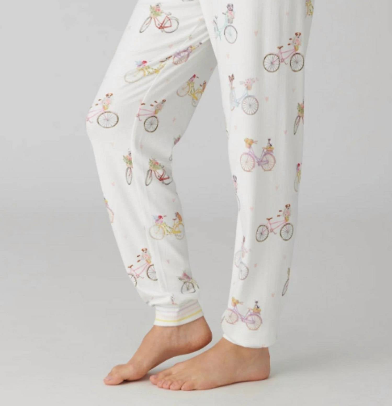 The perfect pant for running around town and looking cool while doing it. Introducing the Floral Market Lounge Pants by PJ Salvage, crafted for comfort and style in a delightful ivory finish. These tapered-leg lounge pants are made from a soft blend of 95% polyester and 5% elastane, making them perfect for cozy lounging. Featuring a pull-on design with an elastic waist and drawstring closure, they offer a custom, comfy fit for relaxed wear. Imported and machine-washable, these patterned joggers with no pockets and striped rib cuffs are an ideal addition to your loungewear collection.