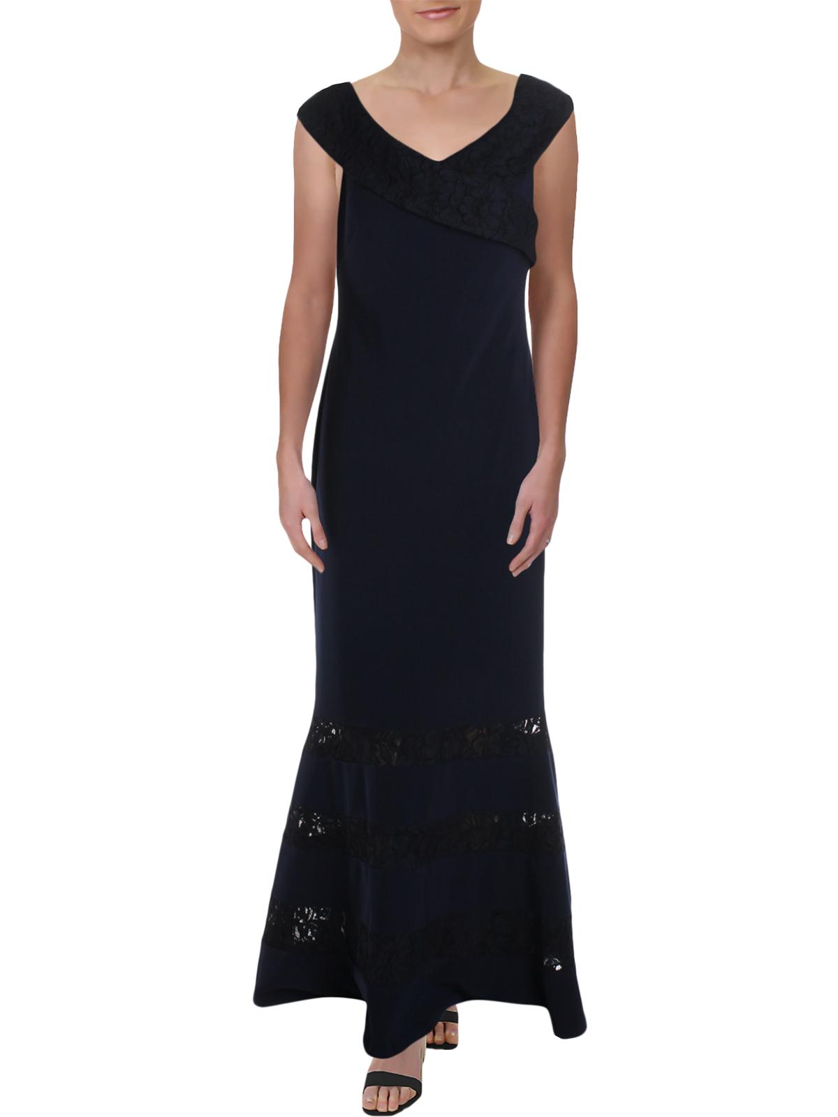 Ralph Lauren Women's Claudinah Off The Shoulder Lace Inset Evening Dress Blue Size 8