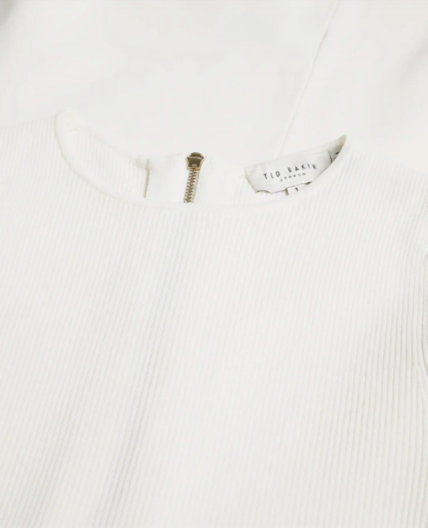 The perfect mini dress for those warmer months. Oliviha White Rib Knit Fit & Flare Mini Dress Soft ribbing subtly textures this flutter-sleeve dress rendered in a fun fit-and-flare silhouette. Back zip closure Jewel neck Short sleeves 53% viscose, 45% polyamide, 2% elastane Hand wash, dry flat