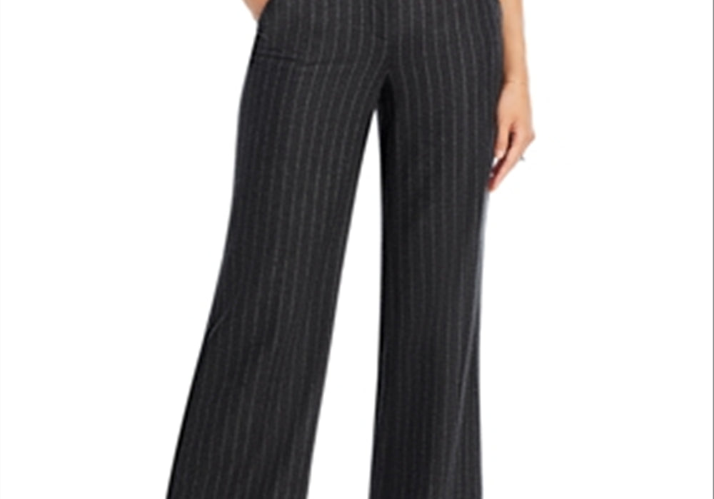 High-waist design | Pinstripe Pattern | Ruffled detailing | Cropped length | Slimming fit | Versatile navy color | Robust Zipper closure | Made from quality materials | Flattering tailoring | Comfortable for all-day wear