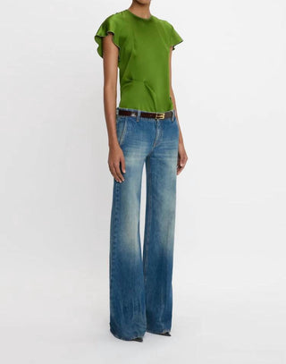 Easel - Chartreuse & Orchid Embroider Knit Top