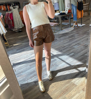 Entro - High Waisted Leather Shorts