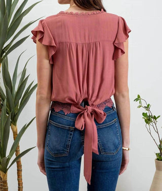 Blu Pepper - Scallop Lace Trim Back Tie Short Sleeve Crop Top