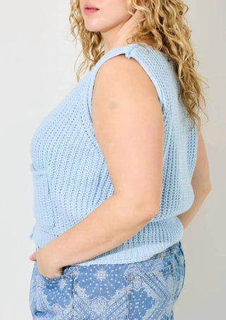 Baevely By Wellmade - Plus-size Powder Sky Knitted Vest